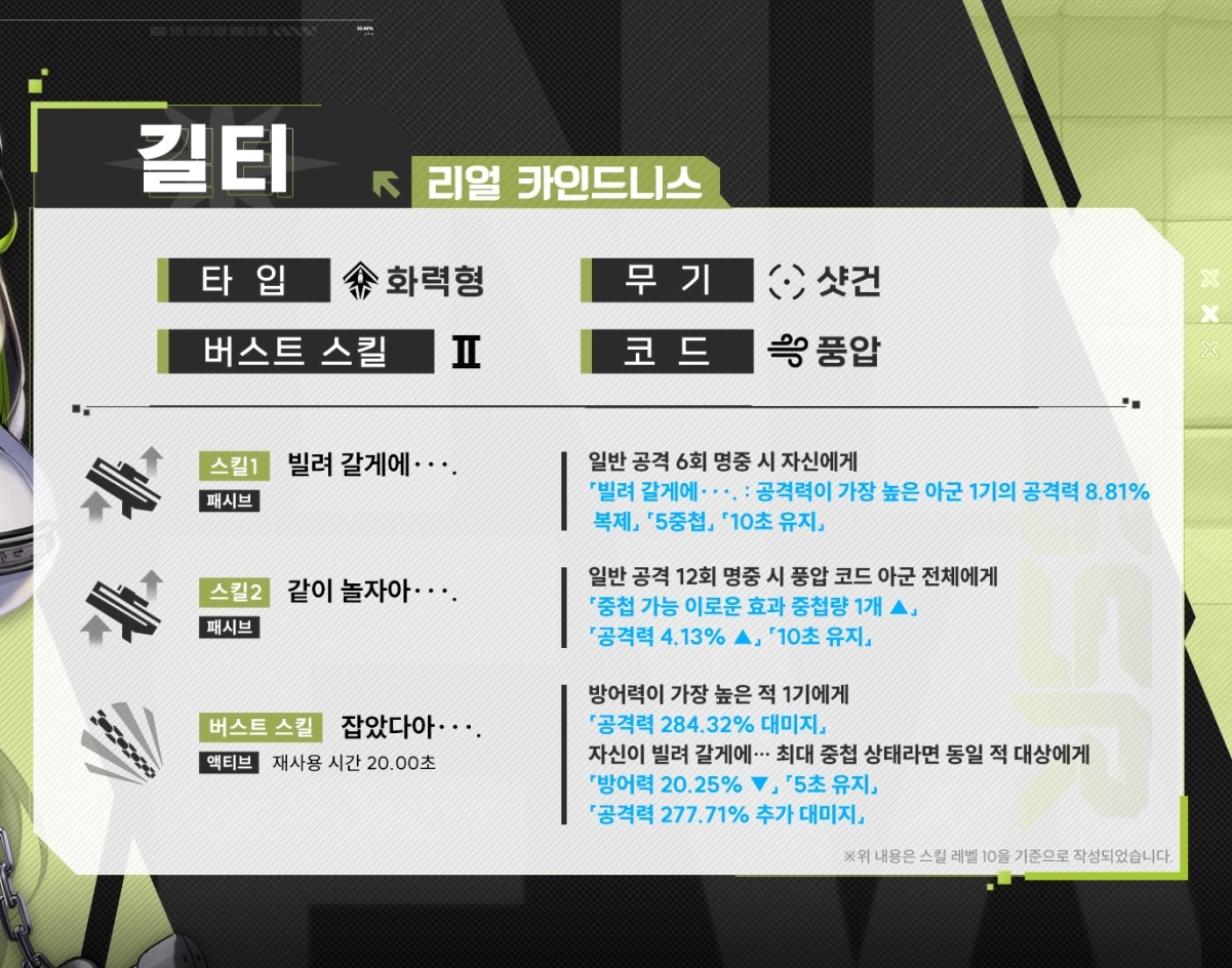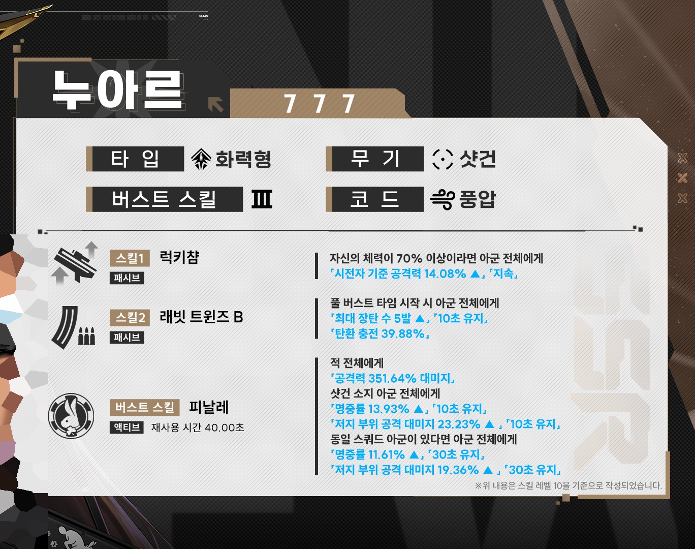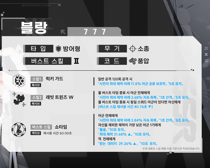 | 티어 | 1버스트 | 2버스트 | 3버스트 | 시너지 |