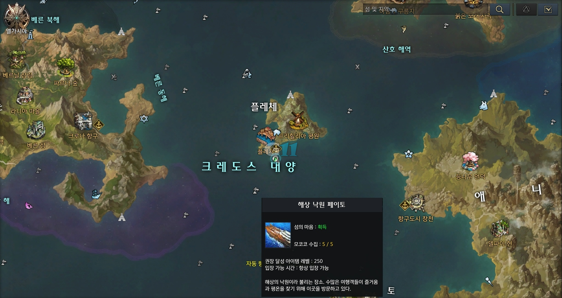 공명의 노래를 얻기 위해선 해적 주화 16,500개가 필요한니 꼭 준비해서 이동하시길 바랍니다. 대항해에서 기에나 바다에 위치한 해상 낙원 페이토로 이동하세요. 베른 북부 크로나 항구 또는 애니츠 항구도시 창천에서 출항하여 이동하면 빠르게 이동할 수 있습니다.
