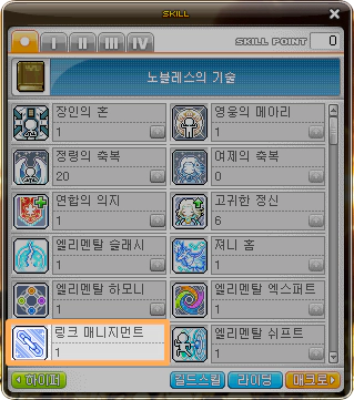 - 보유중인 링크 스킬을 확인할 수 있으며 LINK 버튼으로 링크 스킬을 전수받을 수 있음