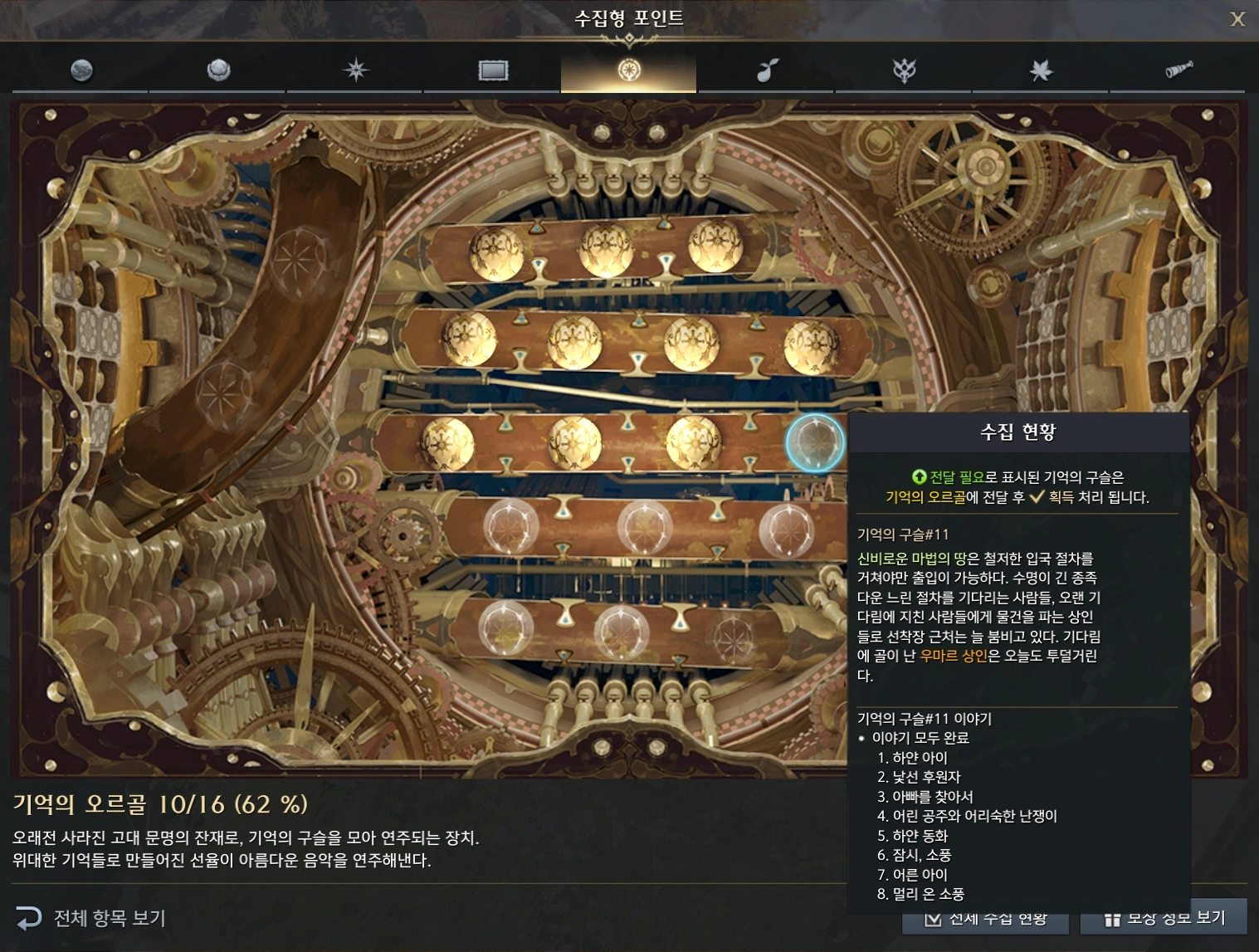 기억의 구슬11 시작 위치