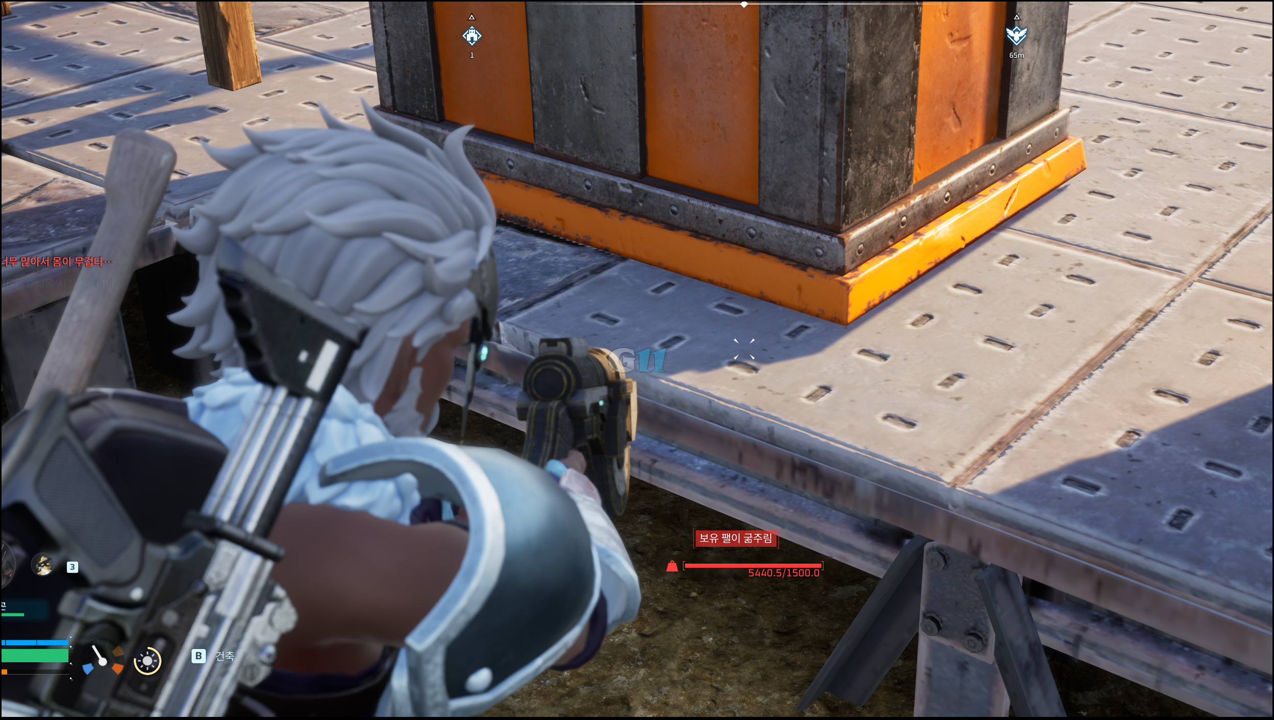 메인 거점에서 상자로 이동할 때에는 갈고리 총을 이용하면 아주 편리합니다. 굳이 상자에 넣지 않더라도 바닥에 떨어뜨려 놓으면 운반 팰이 알아서 상자에 옮겨주기도 하니 편한 방법을 이용하세요.