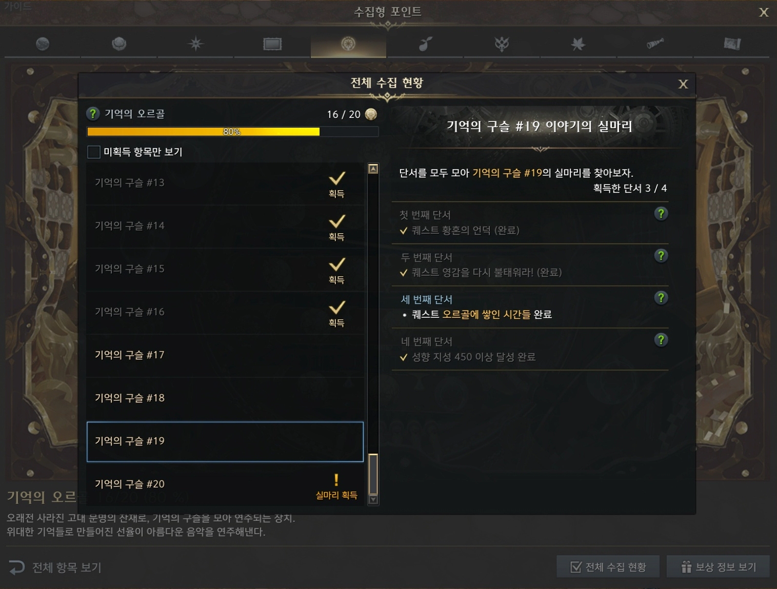 로스트아크 기억의 오르골 기억의 구슬 19 퀘스트 시작 위치를 소개합니다. 수집형 포인트 기억의 오르골 기억의 구슬#19에 대한 자세한 정보는 아래 글을 참고하세요.
