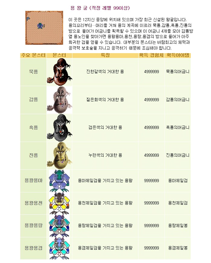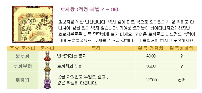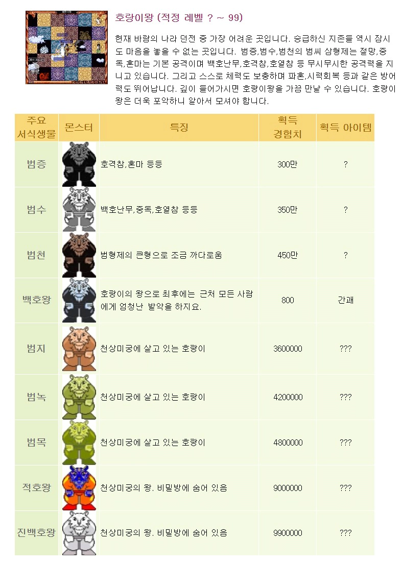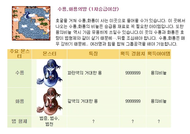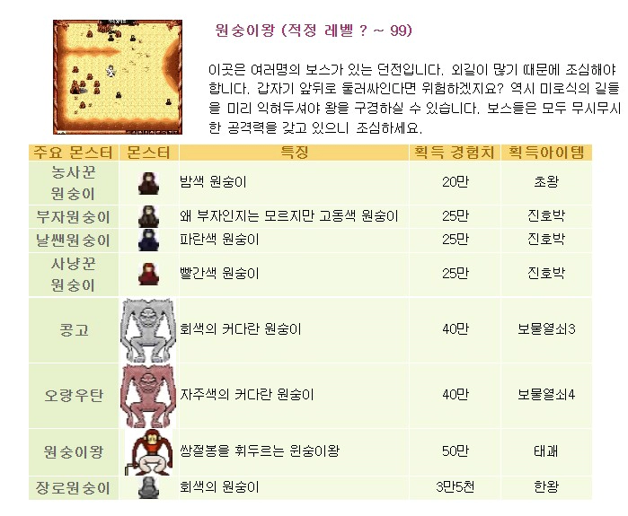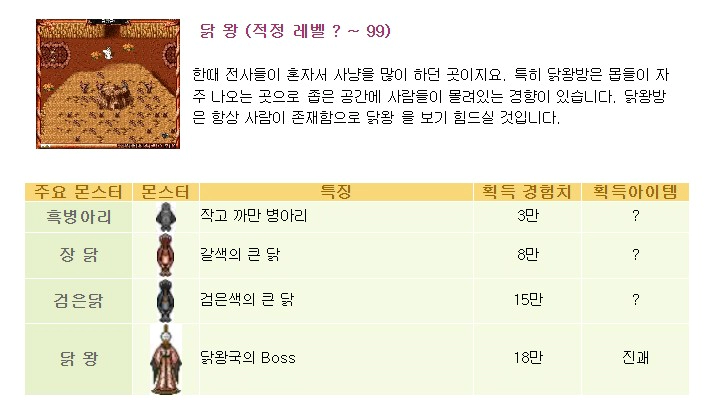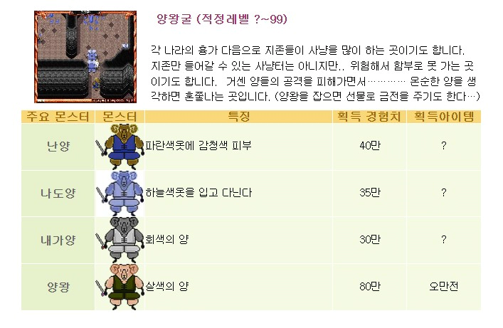 바람의나라 클래식 사냥터 정보 모음 1-99