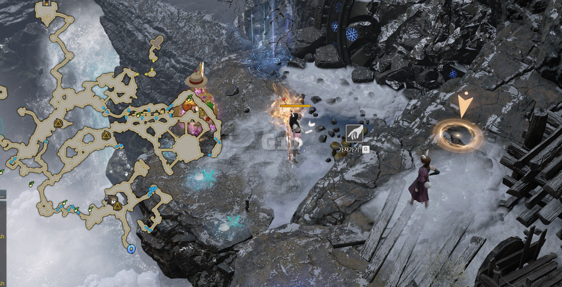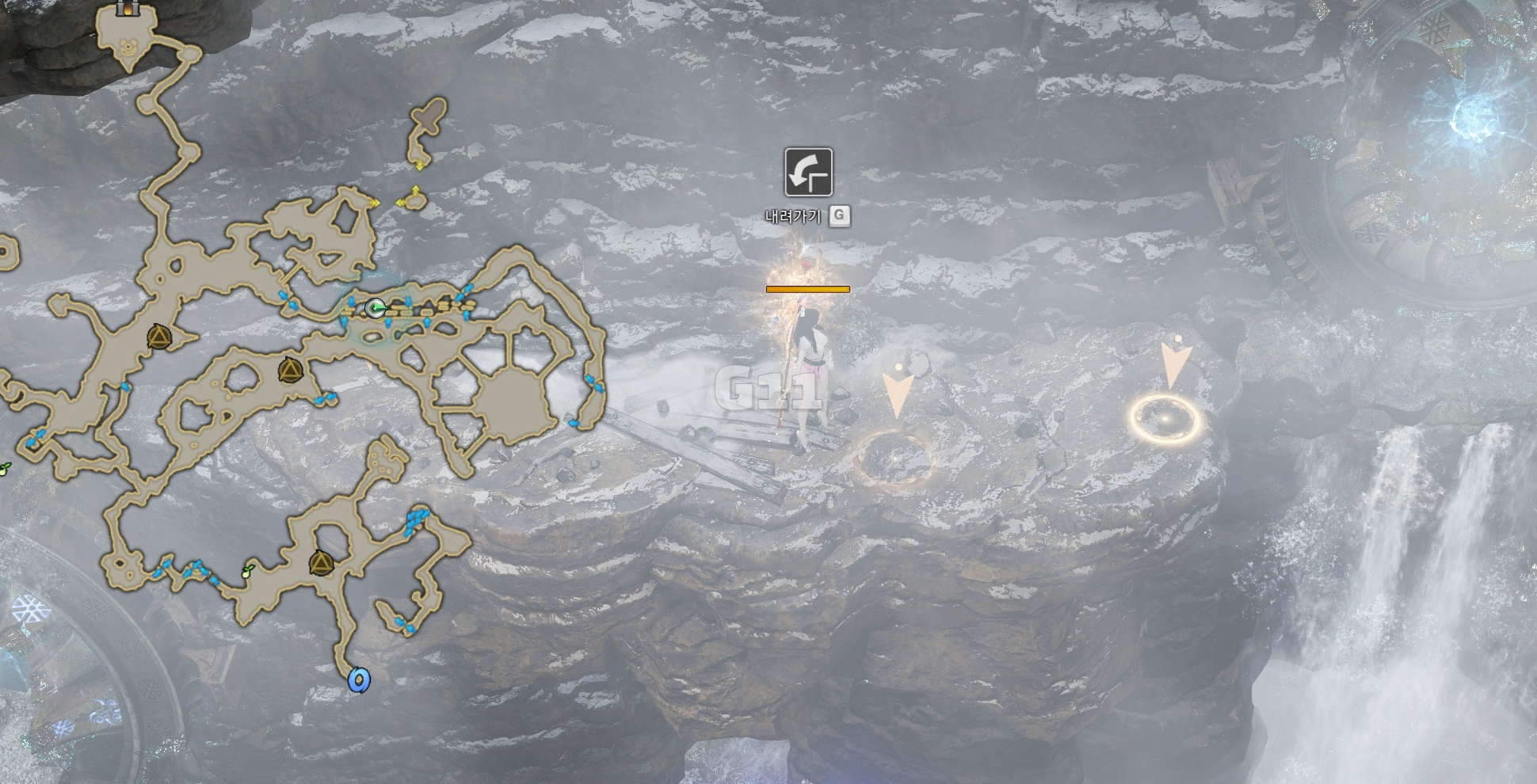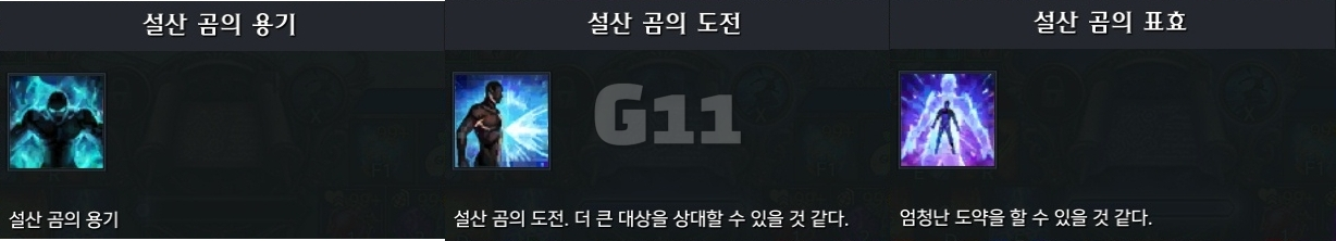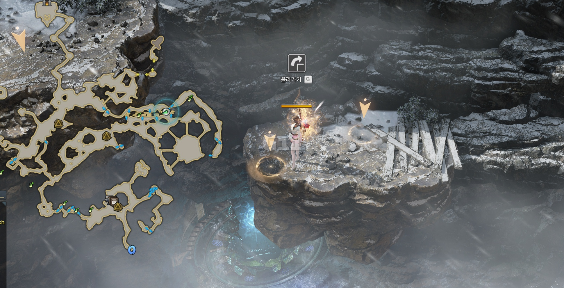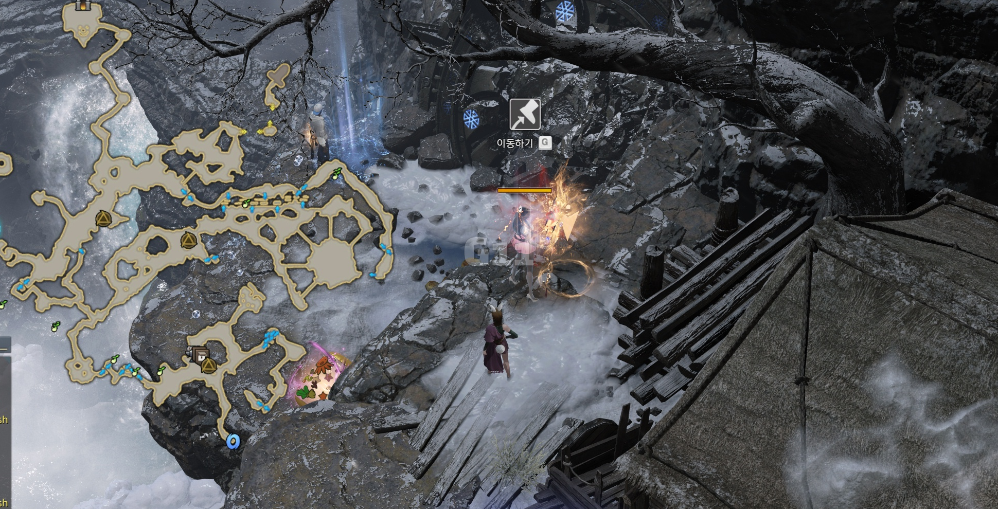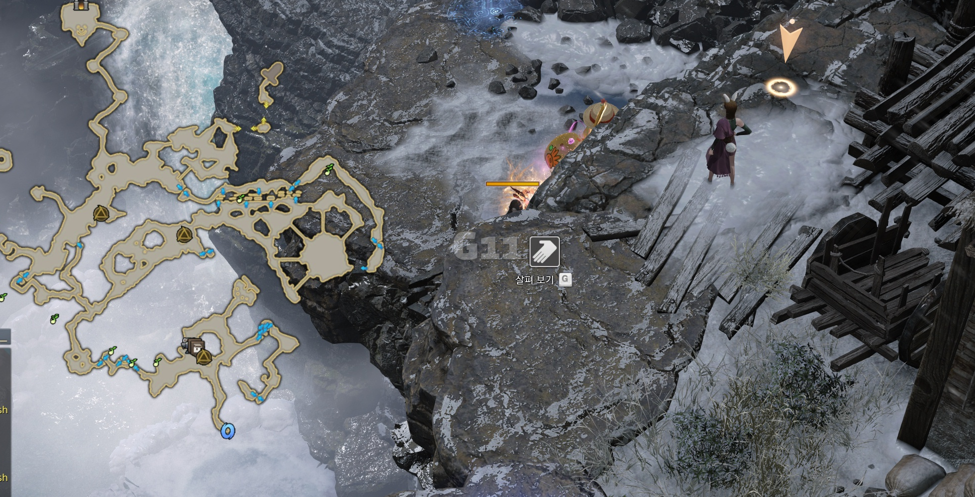 사진의 위치에서 곰을 처치하고 설산 곰의 용기 10 스택을 쌓으면 설산 곰의 도전 버프로 바뀝니다. 설산 곰의 도전 버프 상태에서 큰 곰을 처치하면 도약을 할 수 있는 설산 곰의 포효 버프로 바뀝니다.
