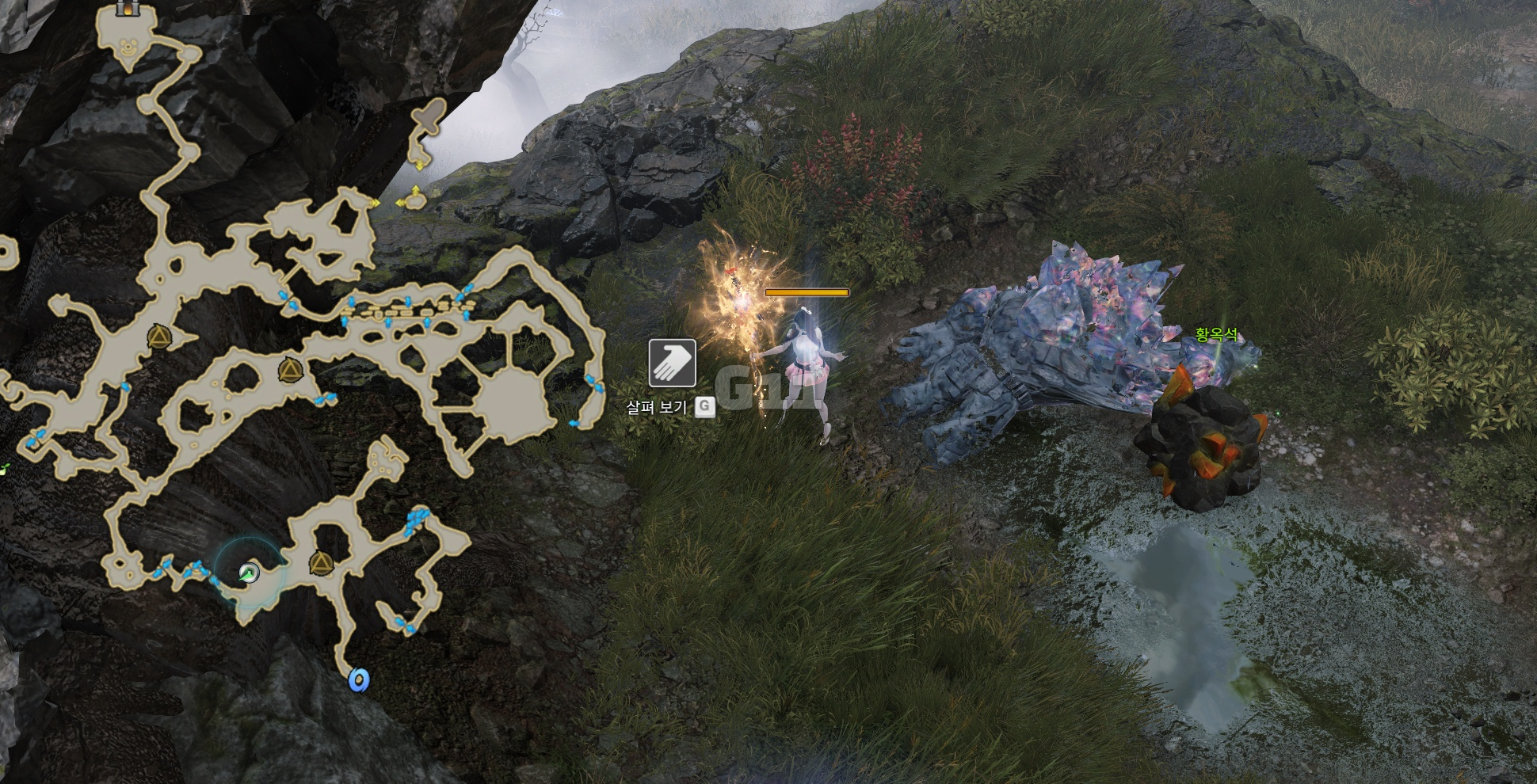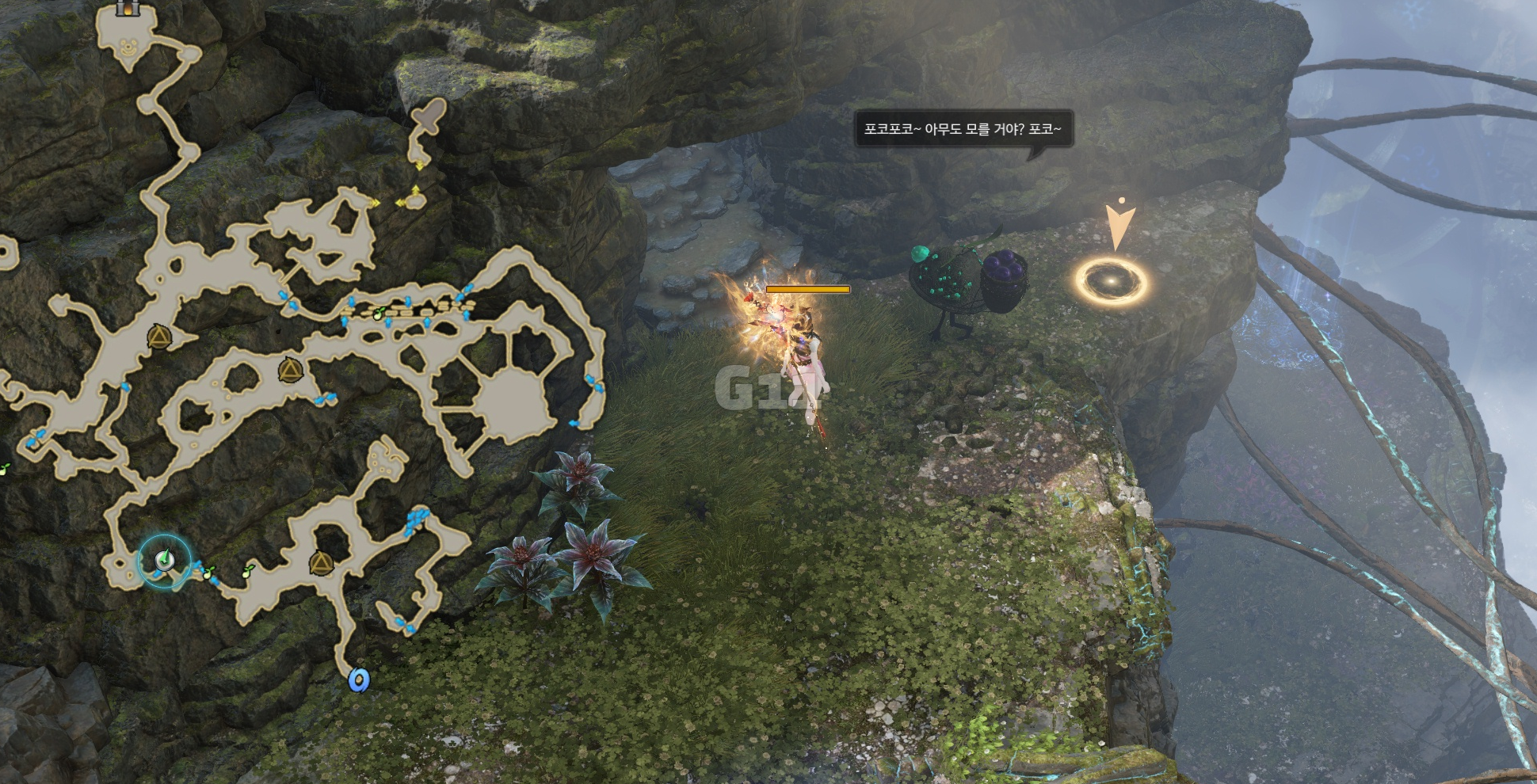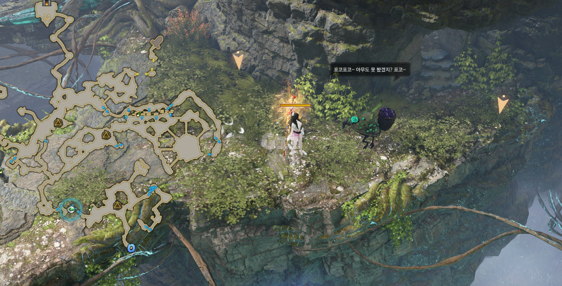 사진의 위치로 이동해 '포코 곡괭이' 버프가 있는 상태에서 포코를 잡으면 포코로 변신됩니다.