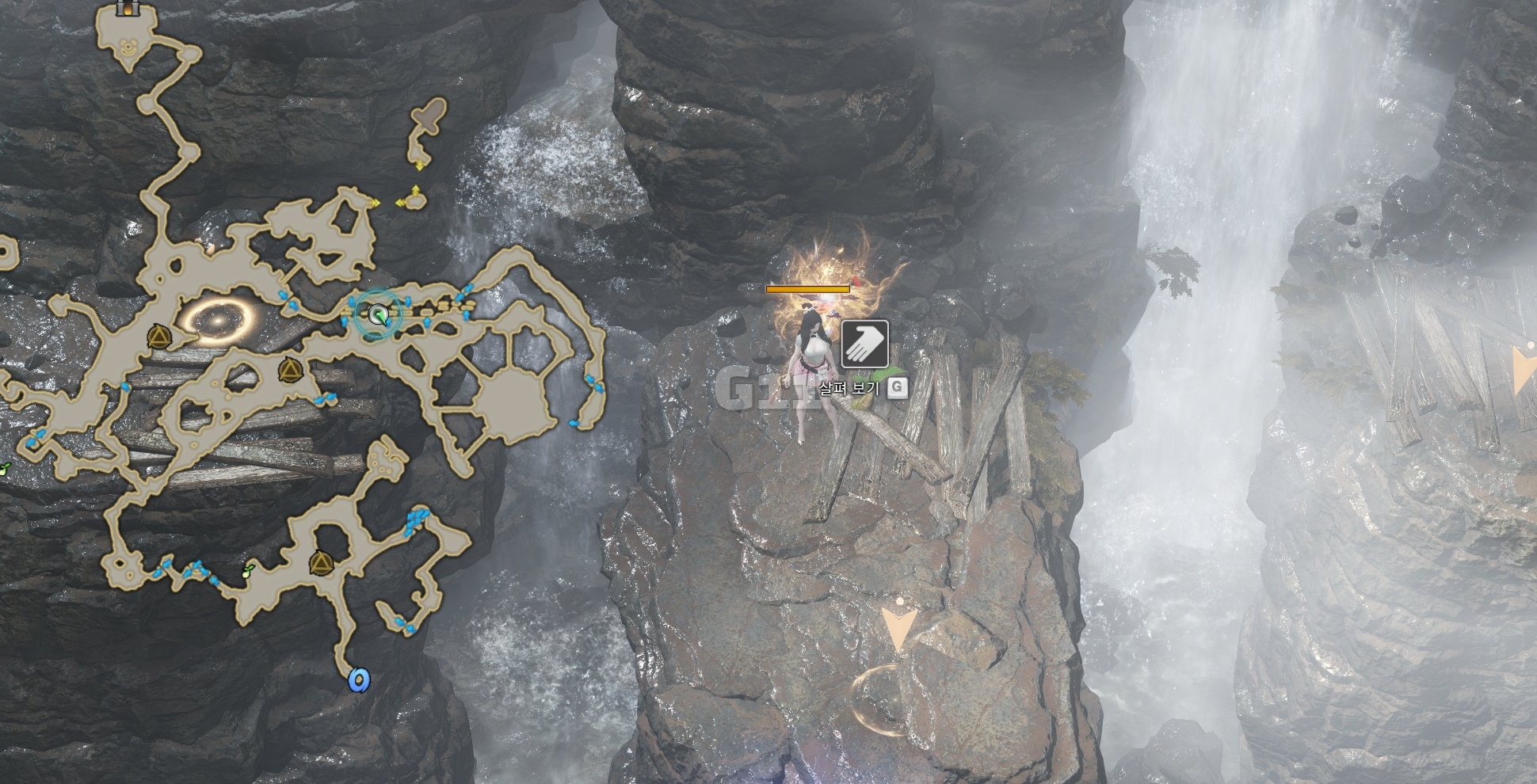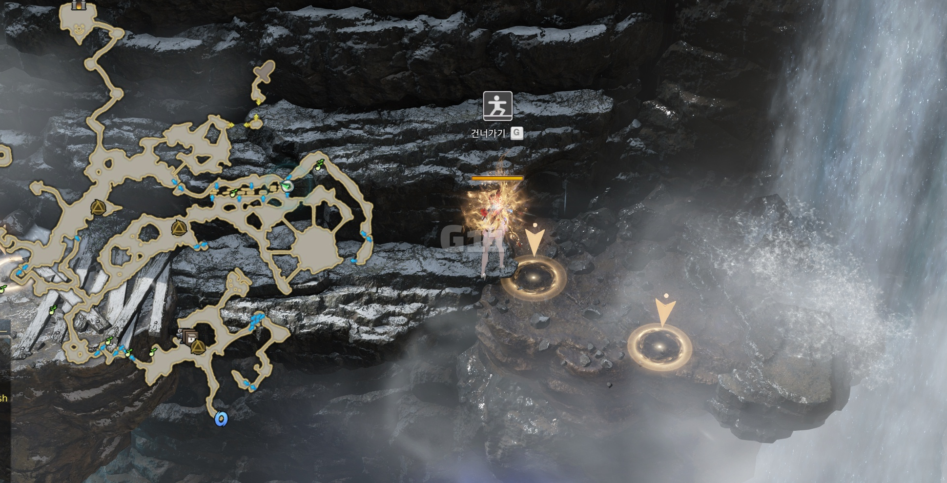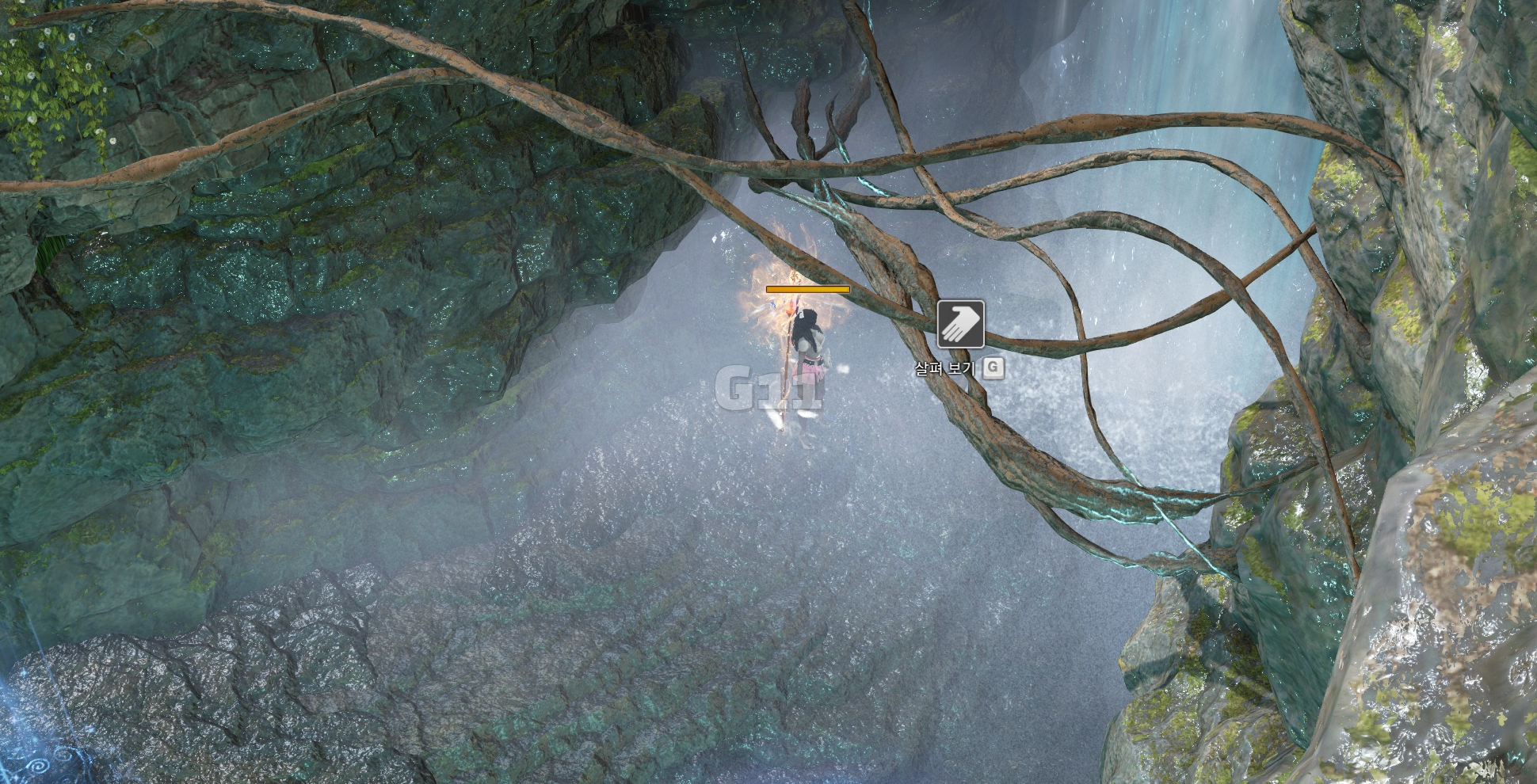 아래로 내려오면 내려가기 상호작용 아래에 점프할 수 있는 상호작용이 하나 더 나타납니다.