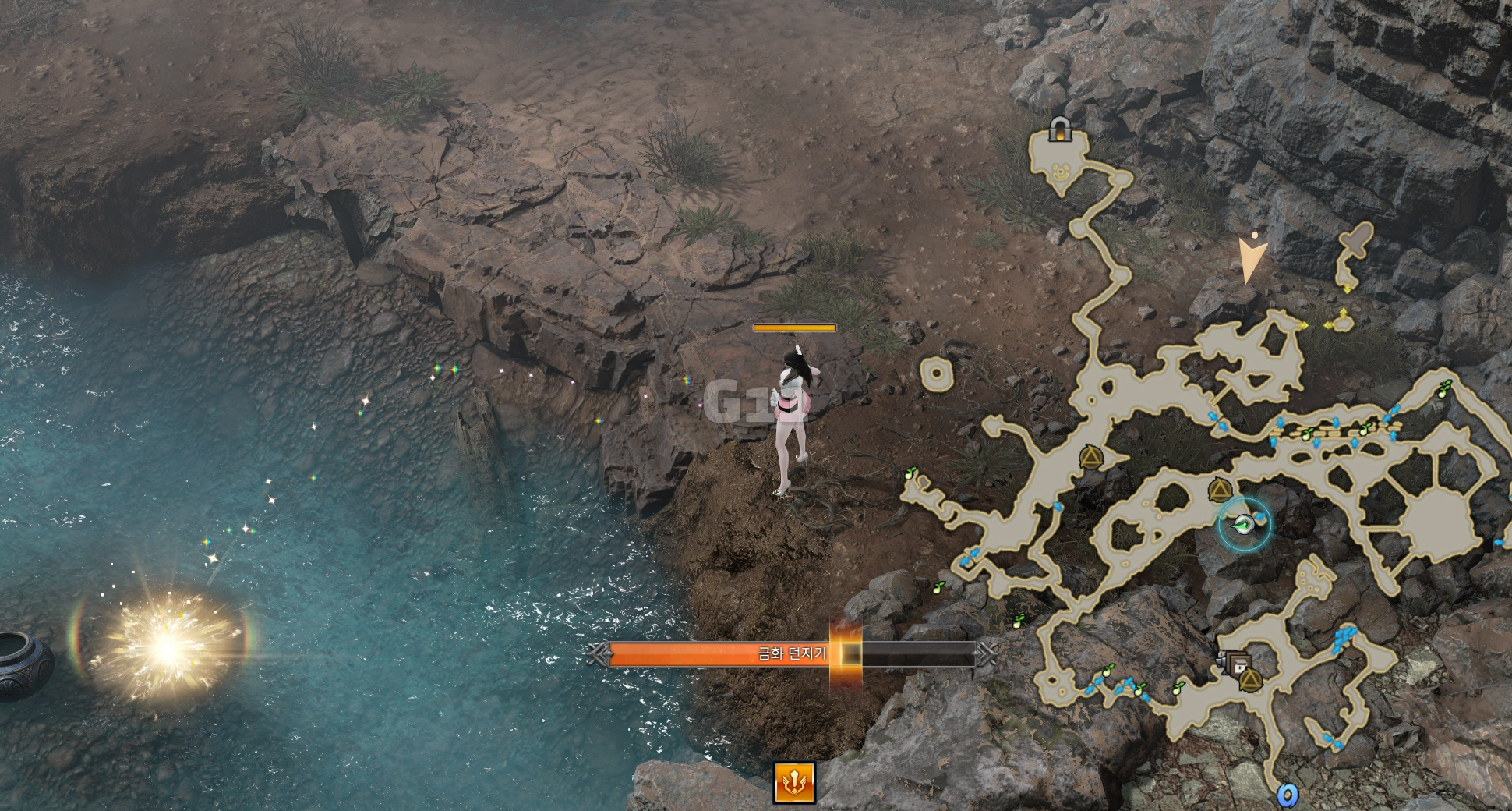 해당 상태에서 걸어서 항아리가 있는 장소로 이동해야 합니다.
