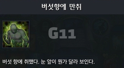 두 사진의 위치에서 버섯을 상호작용을 해서 '버섯향에 만취' 버프 획득합니다.