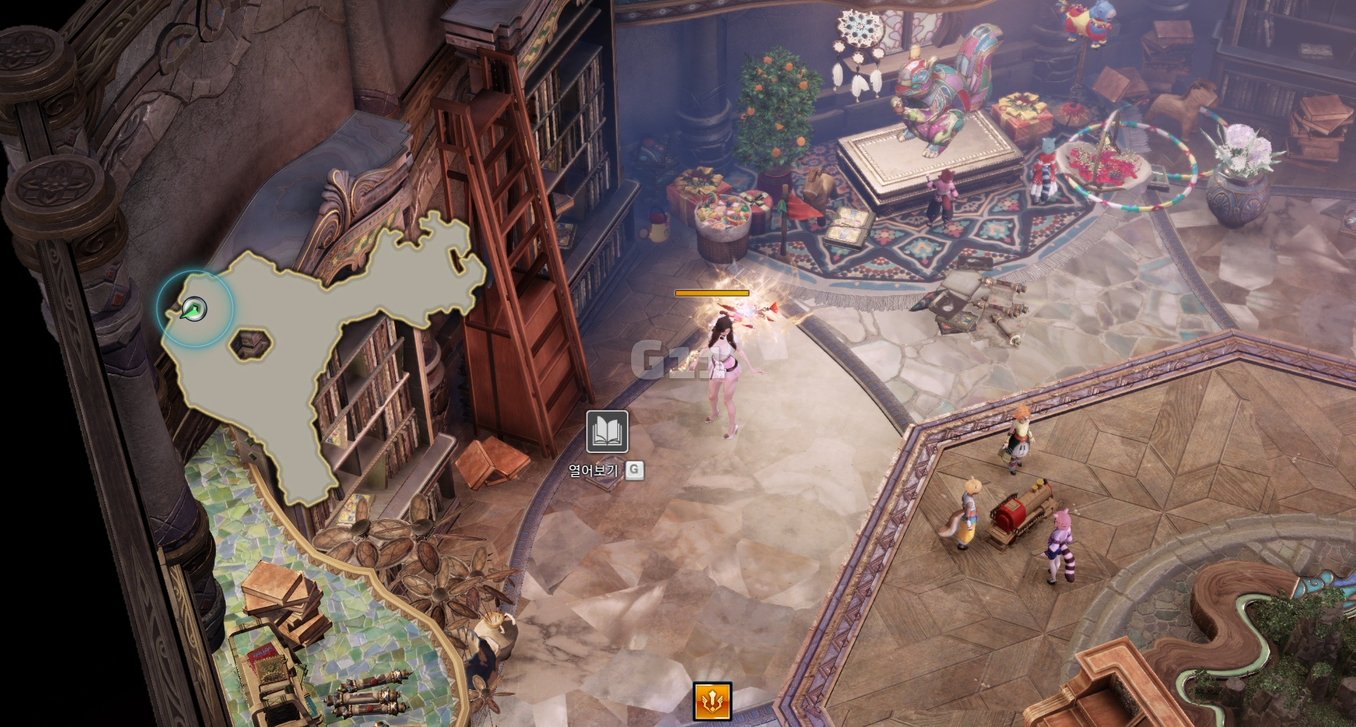Q를 눌러 항아리에 금화를 던지면 모코코가 있는 위치로 이동합니다.