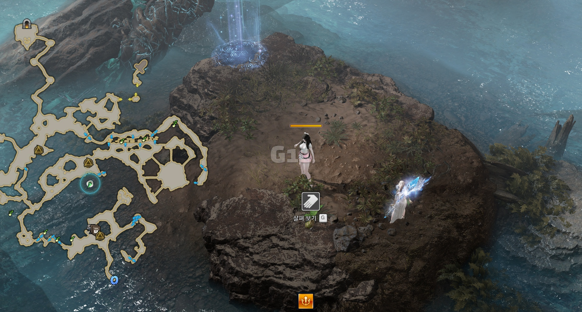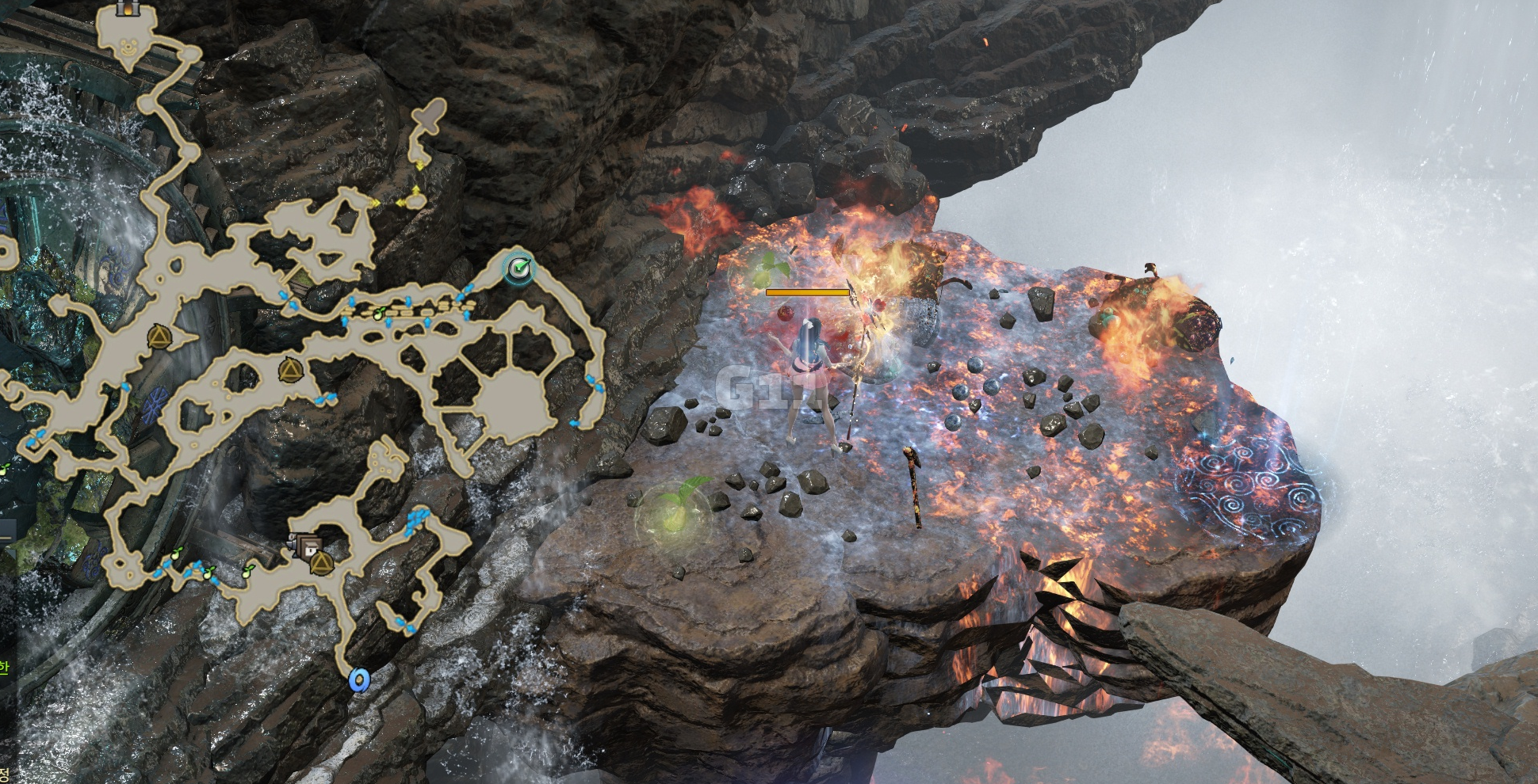 아래에서 모코코 1개를 수집하고 워프를 타고 올라갑니다.