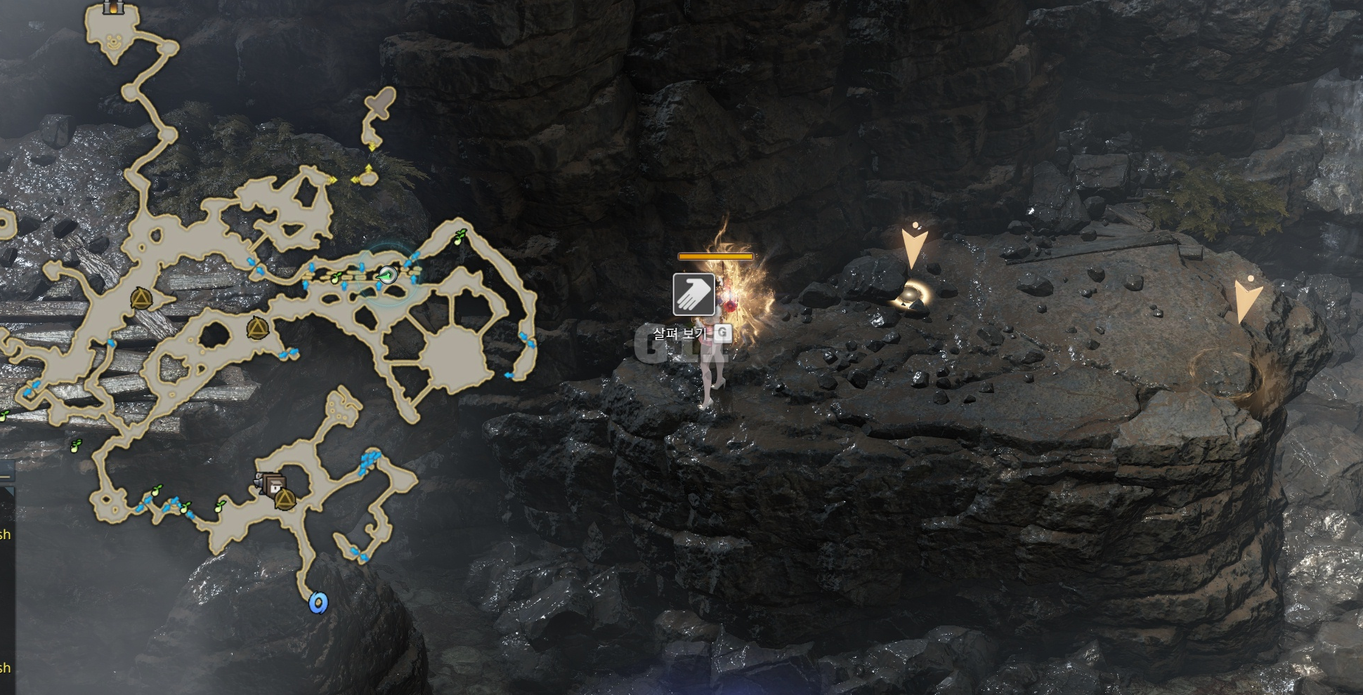 칼날 바람 협곡 스퀘어홀 아래까지 걸어 이동하면 아래에 항아리가 있습니다.