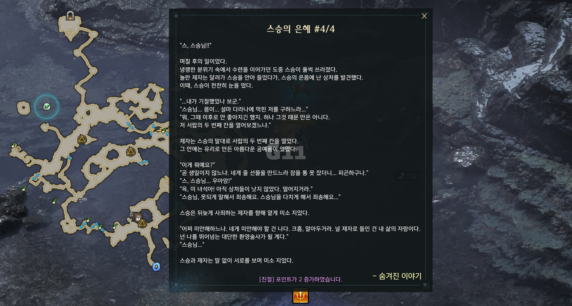 🚨 스승의 은혜 숨겨진 이야기를 완료하면 보상으로 [매력+2]을 얻을 수 있습니다.