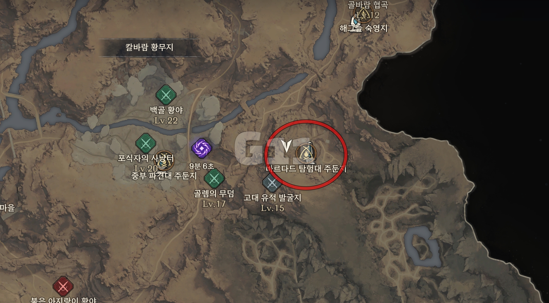 칼바람 황무지에 있는 바르다르 탐험대 주둔지에서 조약돌을 파밍할 수 있습니다. 조약돌은 일정 시간이 지나면 그 자리에서 다시 상호 작용이 가능하고 이 곳이 아니더라도 조약돌은 필드 내 곳곳에서 젠 됩니다.
