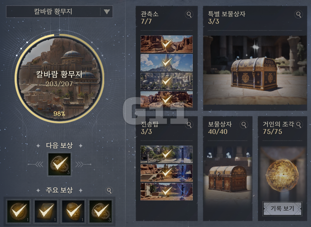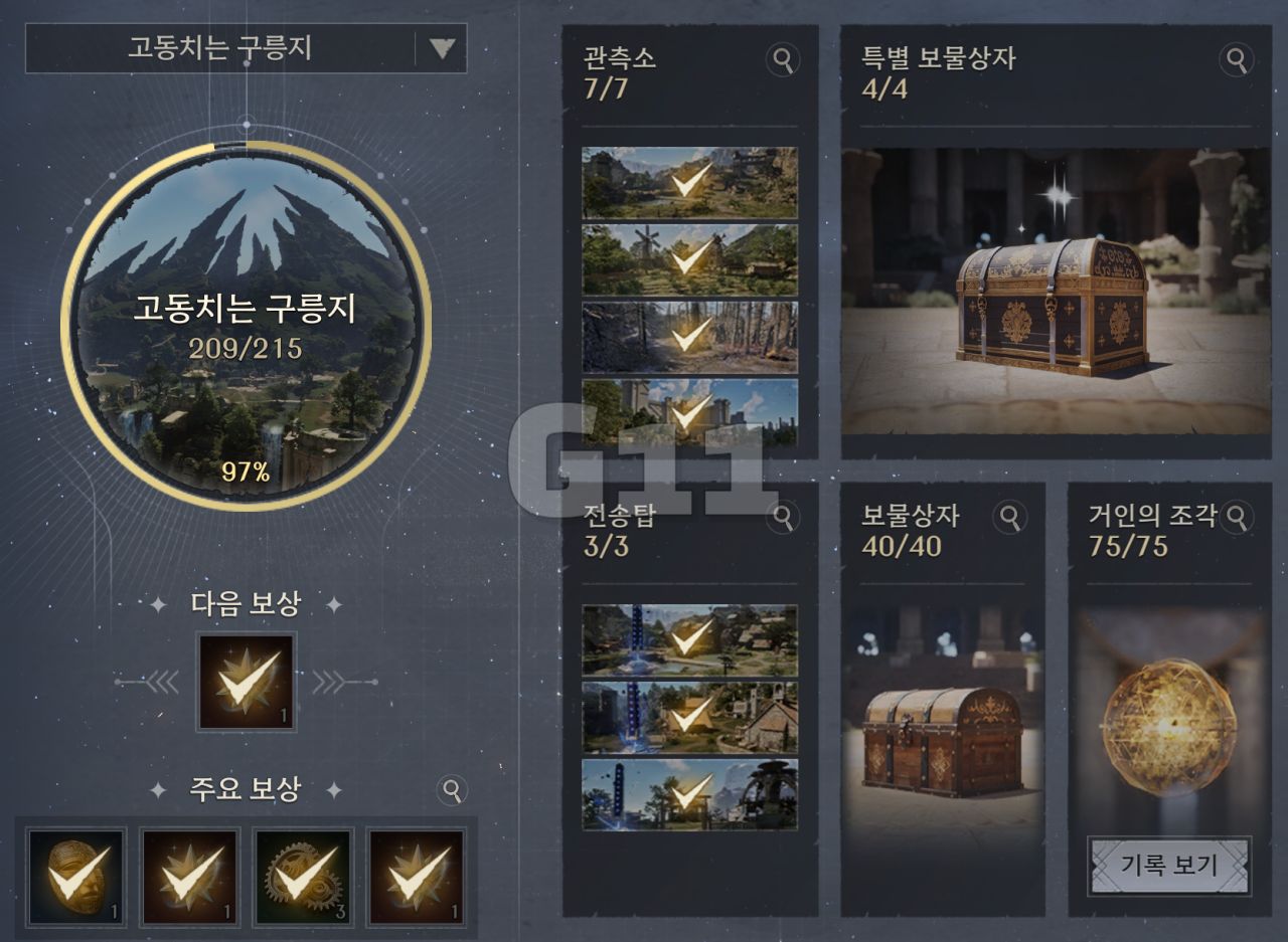 관측소와 특별 보물상자는 지도를 확대하거나 미니맵에서 아이콘으로 위치를 알 수 있습니다.