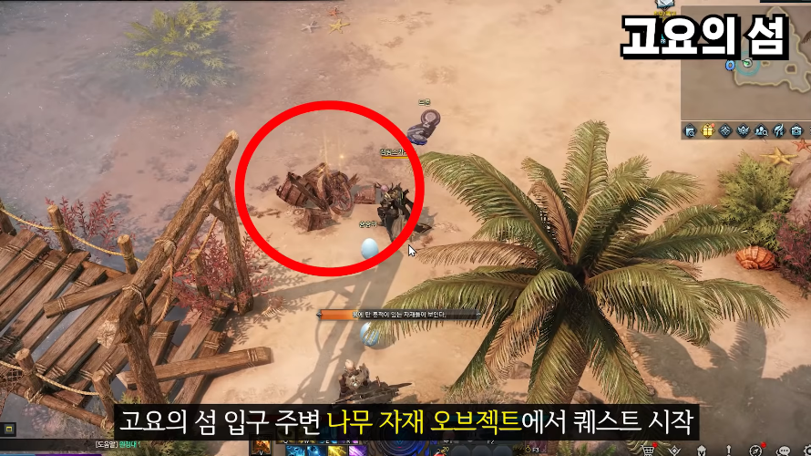 고요의 섬 입구 주변 나무 자재 오브젝트에서 [거기 누구요?] 퀘스트를 시작할 수 있습니다. 이 퀘스트를 하다 보면 전설의 대장장이에게 [강력한 스톤] 퀘스트를 받을 수 있는데 이 퀘스트를 완료하면 스킬 포인트 물약을 얻을 수 있습니다. 잠식당한 거대 로카록의 조각과 페블링의 돌은 토토이크 침묵하는 거인의 숲에서 잡몹에게 얻을 수 있고 타나토스의 네 번째 손톱 조각은 유디아 살란드 구릉지에 있는 모라이 유적 보스 타나토스를 처치하고 획득할 수 있습니다.