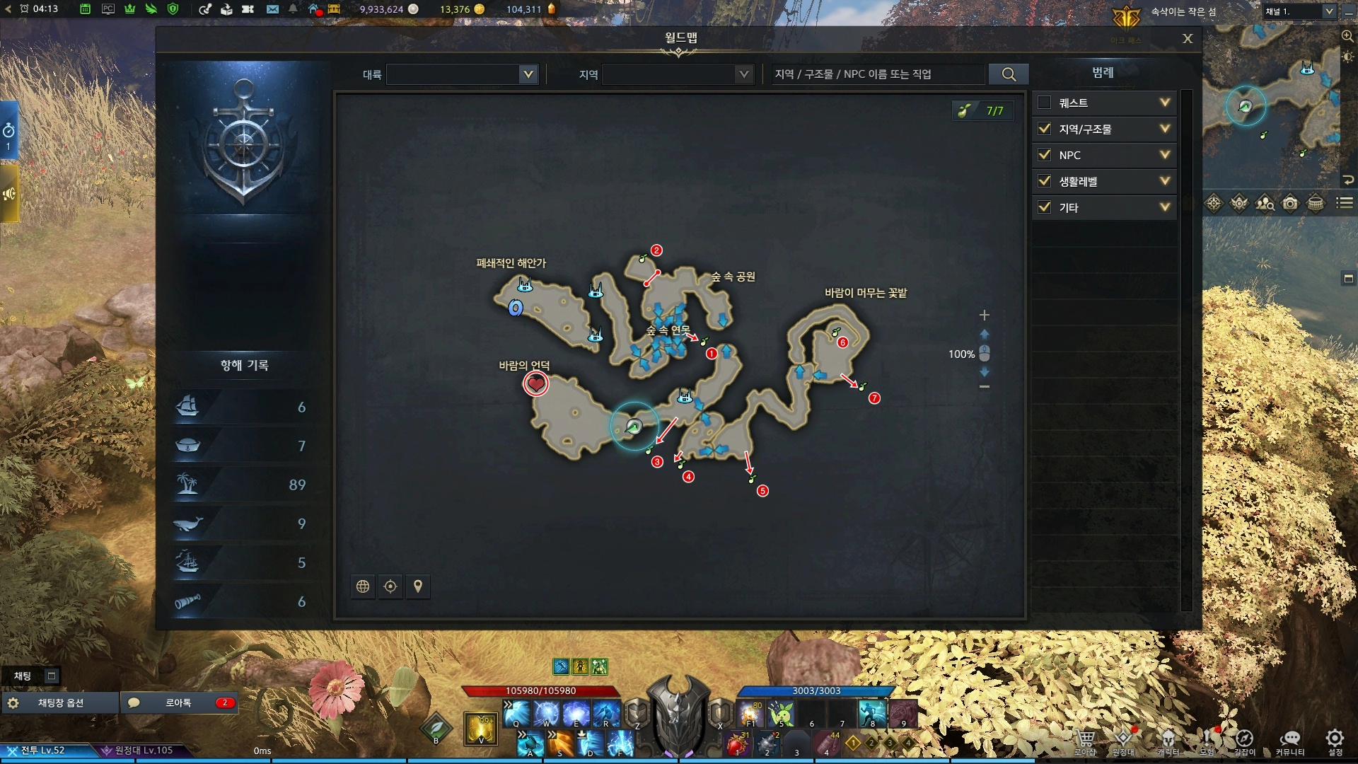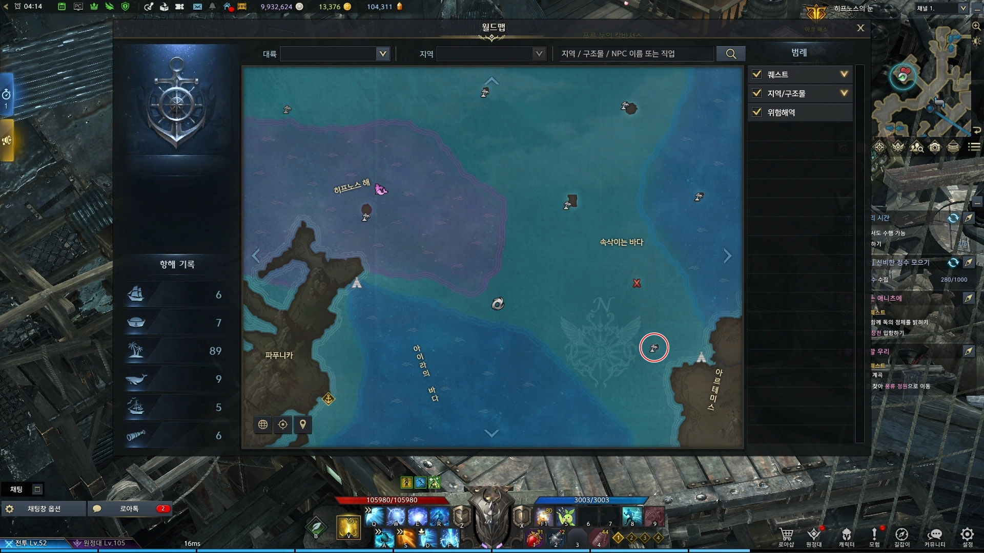 폭풍우 해역이 길기 때문에 내성 포인트가 낮은 분들은 위로 살짝 우회하며 항해하면 됩니다.