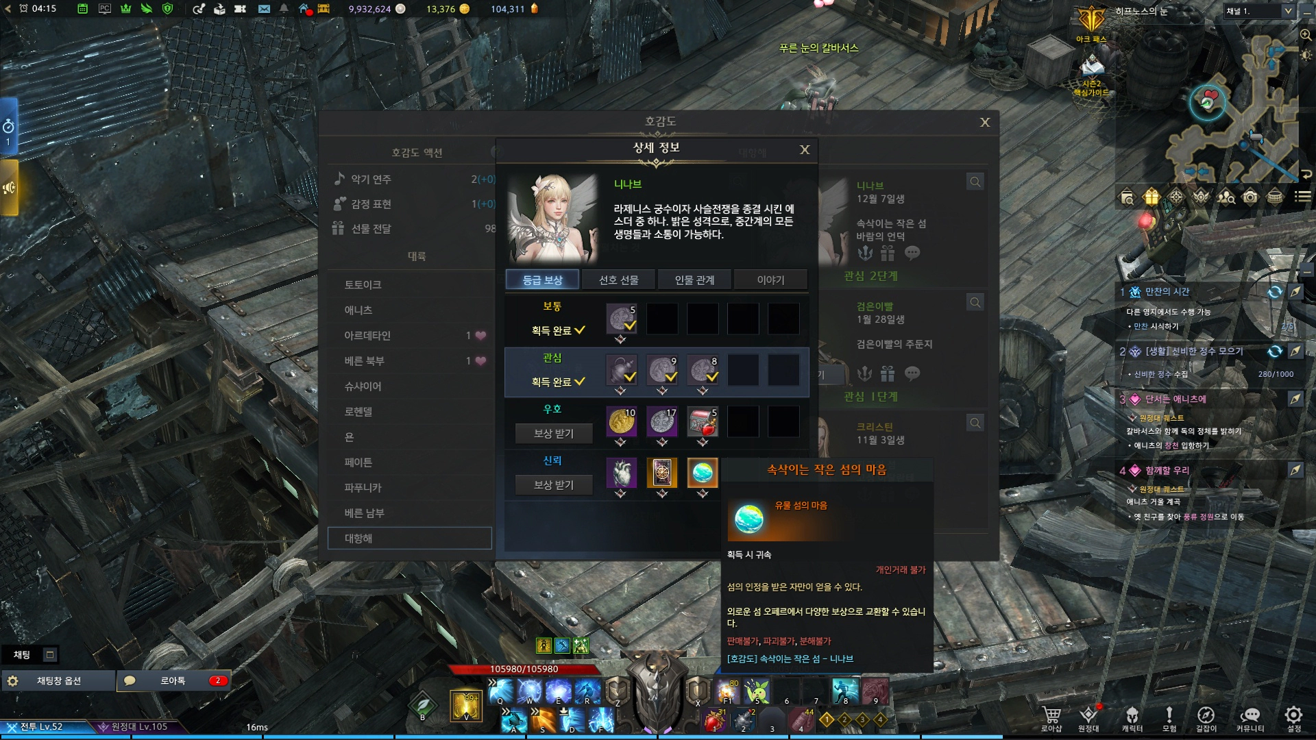- 속삭이는 작은섬 섬의 마음: 니나브 호감도 신뢰 등급