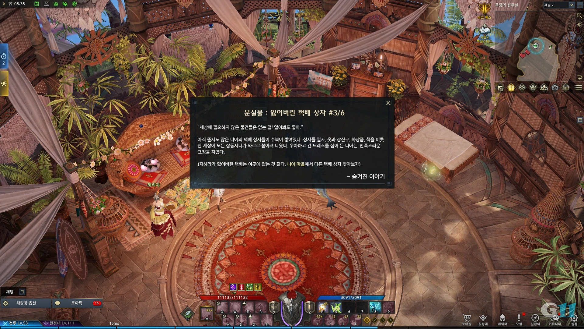다음 잃어버린 택배 상자3은 니아 마을 족장의 집무실 스퀘어홀타고 이동합니다.