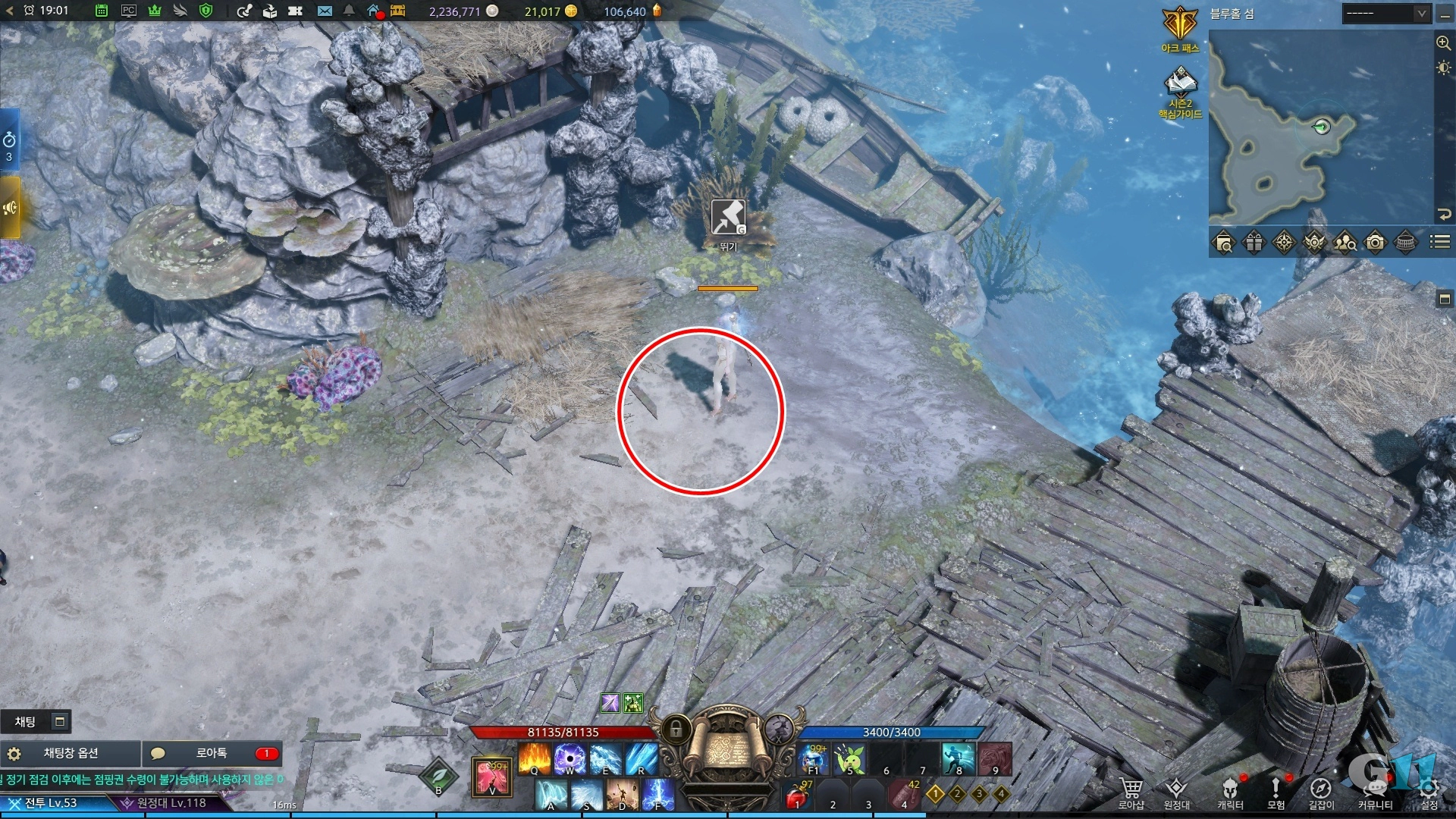 블루홀 섬 퀘스트를 모두 완료하고 해당 위치에 가면 상호작용 뛰기가 활성화됩니다.