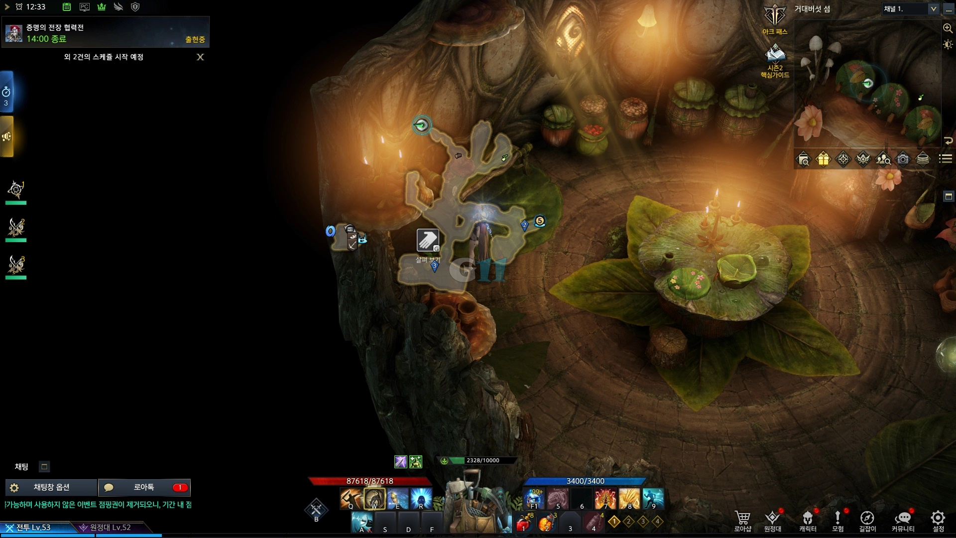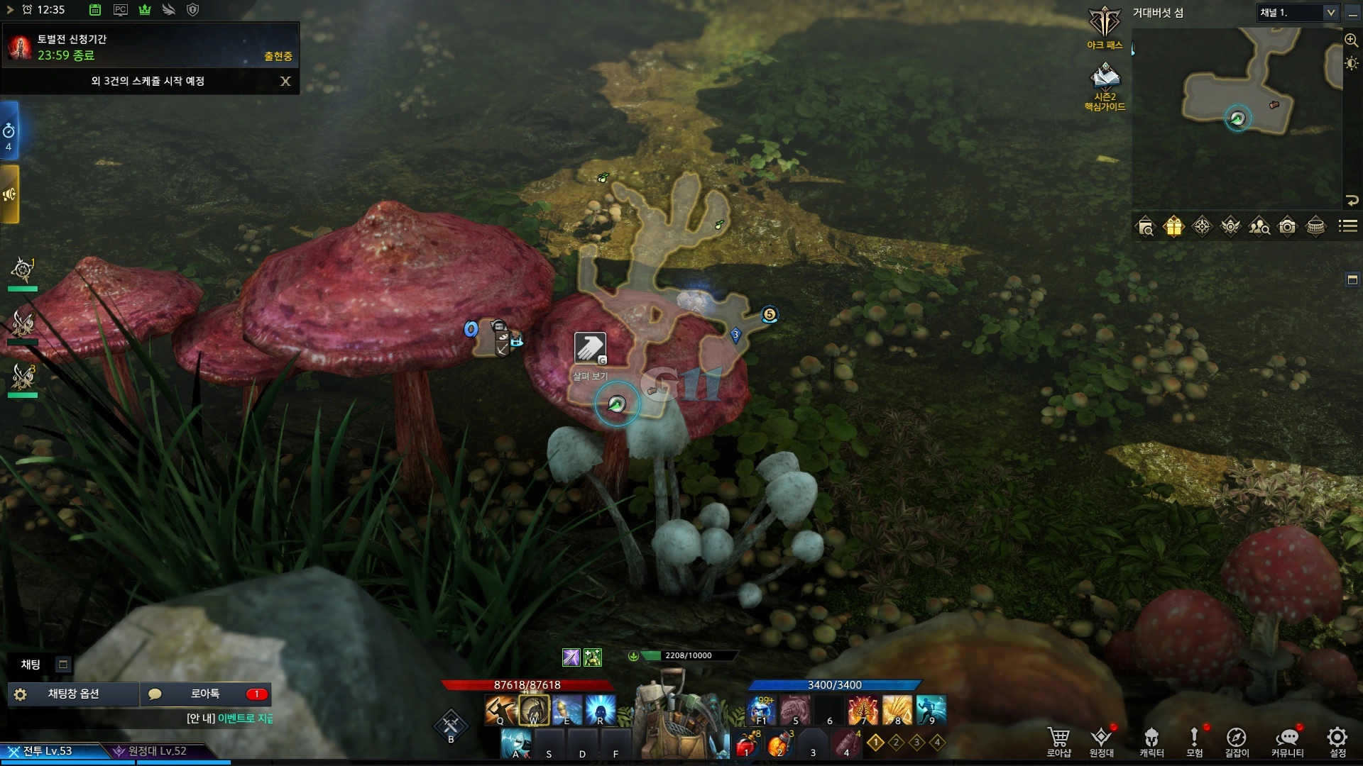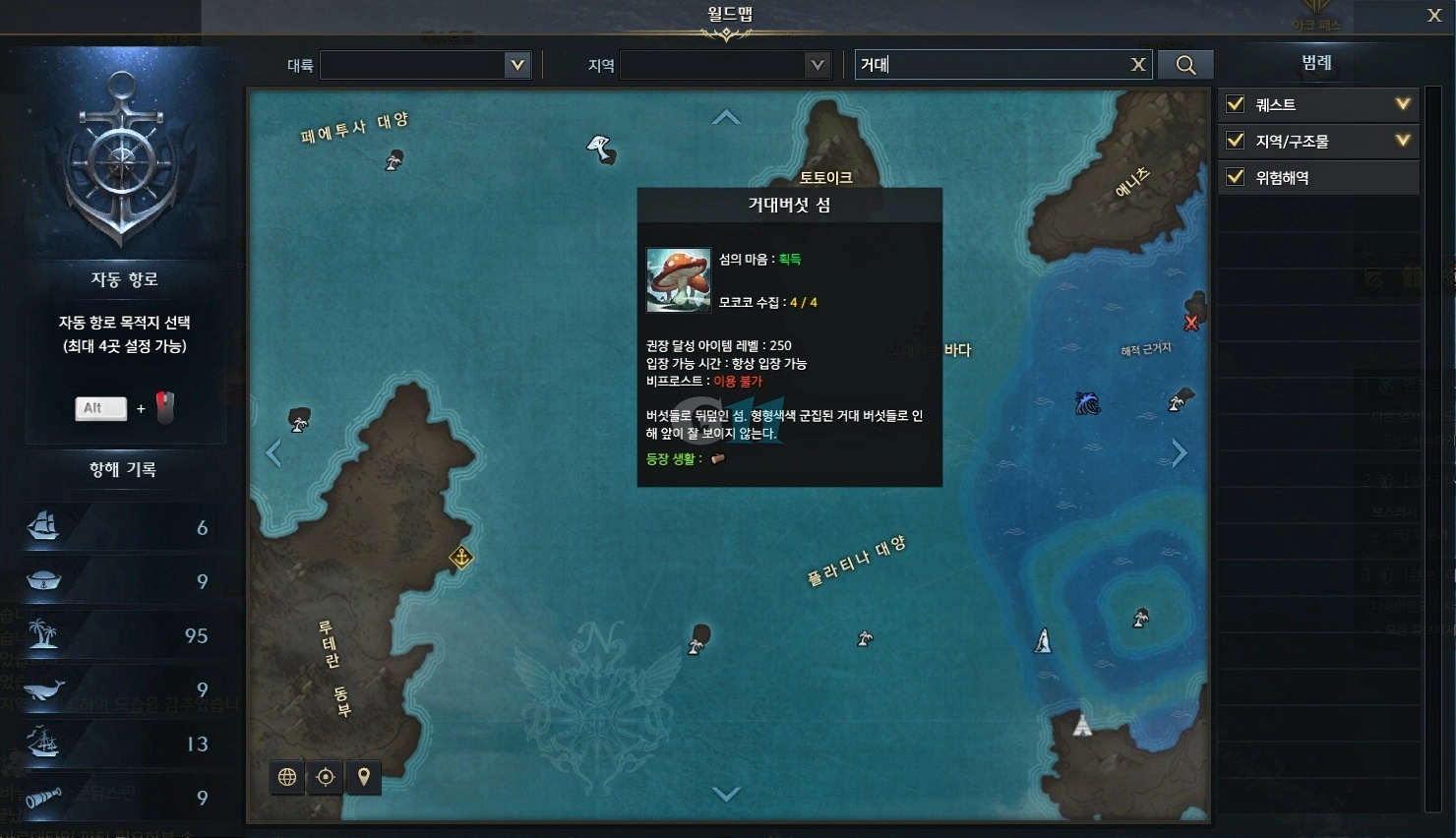 거대버섯 섬 내부에 입장하여 노란색 일반 퀘스트를 진행해야 합니다.