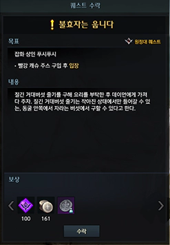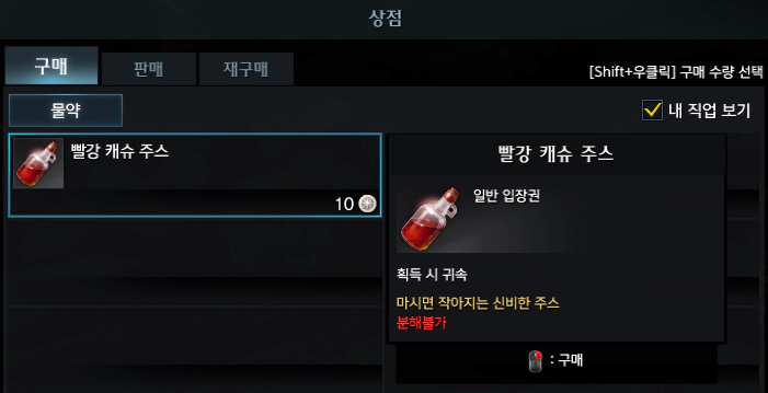 옆에 있는 상인을 통해 빨강 캐슈 주스를 구매하고 마신 뒤 상호작용을 하여 다음으로 넘어갈 수 있습니다.