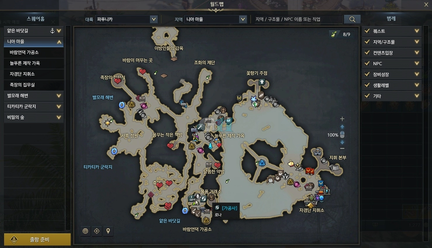 파푸니카 기준 6시 스퀘어 홀을 이용해 바로 올라가면 가공사가 있습니다. 부적 강화 시 채집 제한 레벨이 있던 채집물을 캘 수 있도록 생활 가능 활동 레벨을 올려줍니다.