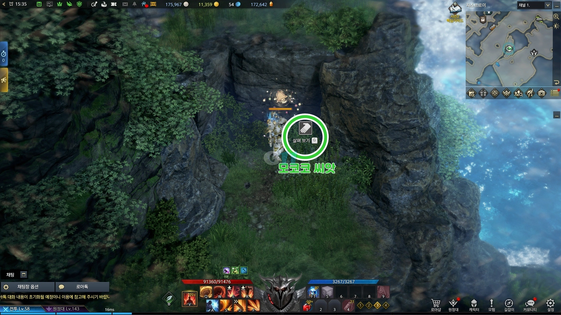 술기운 버프를 획득하고 바로 나와서 지스브로이 협동 퀘스트를 진행하는 곳으로 로프를 타고 내려와 절벽을 타고 올라옵니다. 절벽마다 모코코 씨앗이 하나씩 있으니 살펴보시고 상호작용을 작 확인하여 되돌아오는 일이 없도록 주의하세요.
