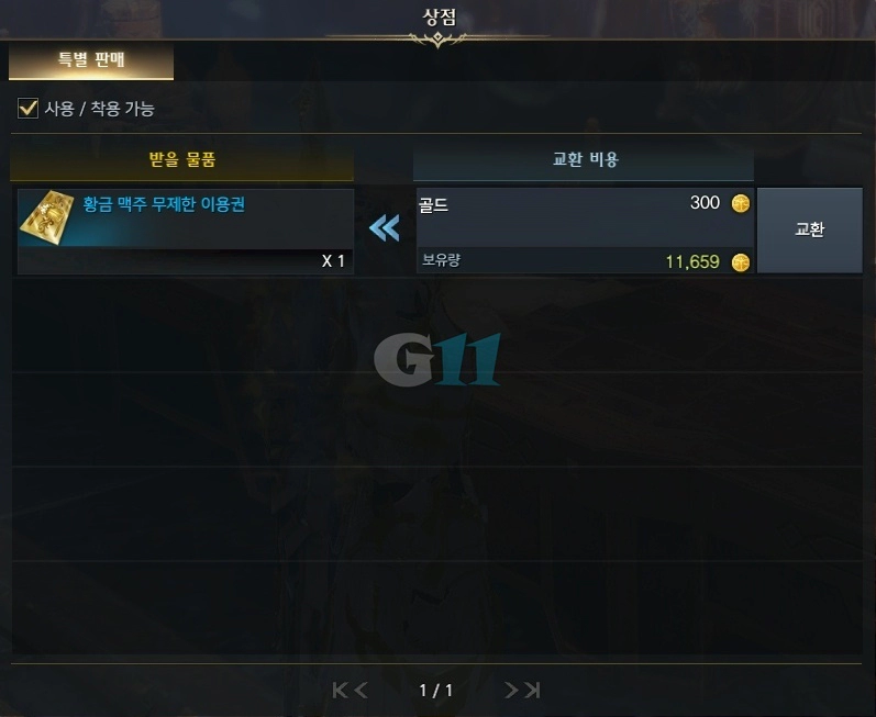 모코코 씨앗 획득을 위해 지스브로이 지하에서 [황금종 이용 문의] 주점 마스터 람빅투르 NPC를 통해 황금 맥주 무제한 이용권을 300 골드로 교환합니다.
