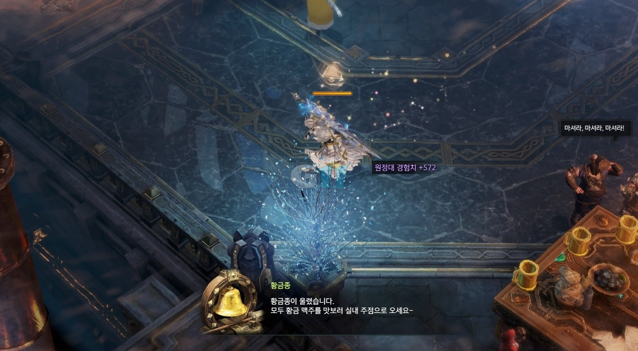 - 골든벨을 울리고 '놀라운 술기운' 버프 획득 (10분 지속, 300 골드 소모)