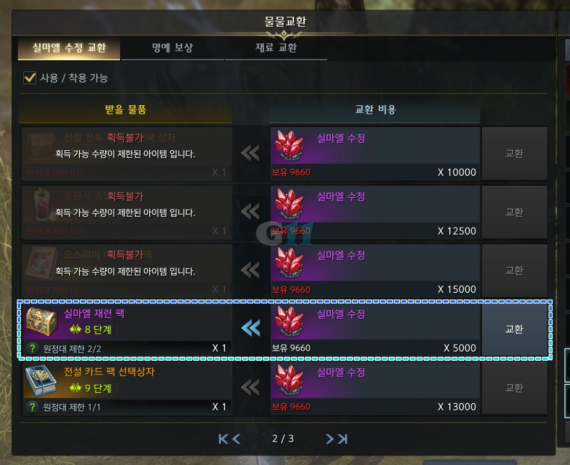 로스트아크 실마엘 수정 교환 목록과 수급처 | 로아 시즌2