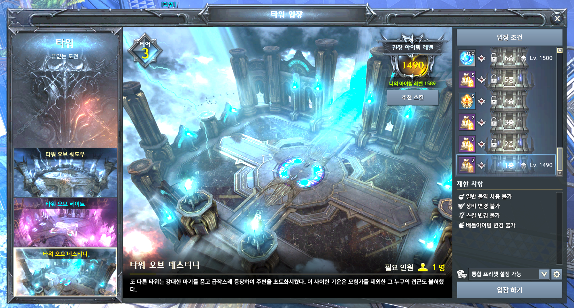 | 타워 오브 데스티니 | 캐릭터 횟수 제한 |
