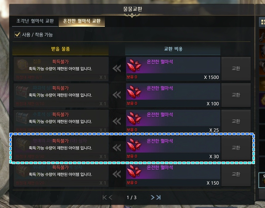 | 이벤트 재료 교환 | 주간 원정대 횟수 제한 |