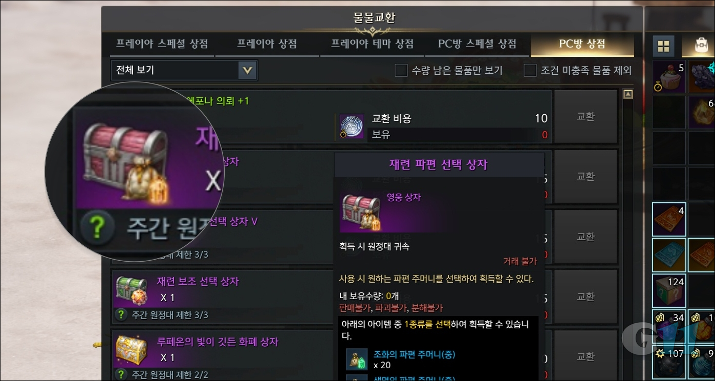| PC방 이벤트 교환 | 주간 원정대 횟수 제한 |