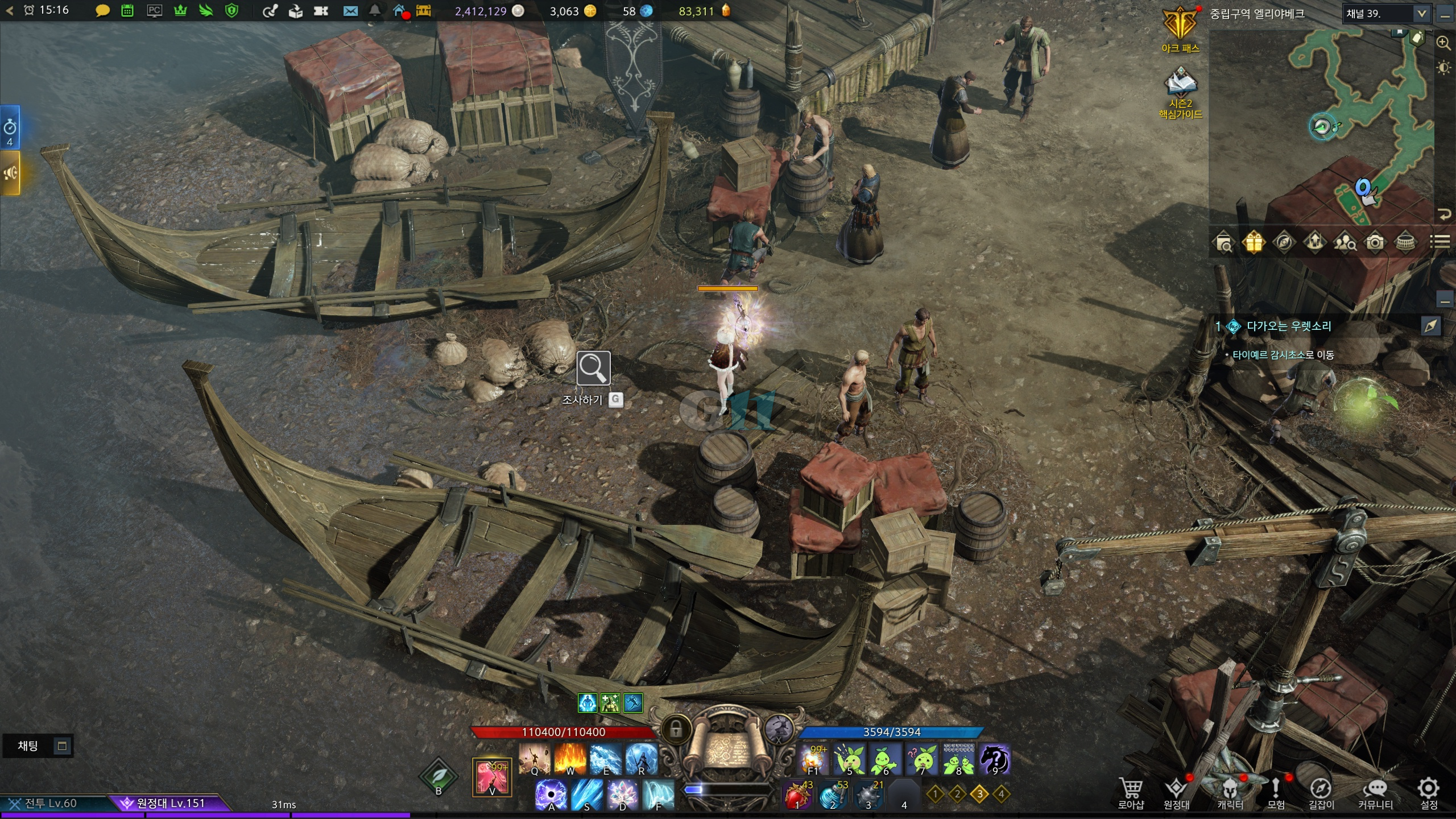어금니의 강 지역에서 중립구역 엘리야베크 스퀘어 홀을 이용해 이동합니다. 해당 위치는 지도에서 대항해 글씨 바로 위 위치입니다.