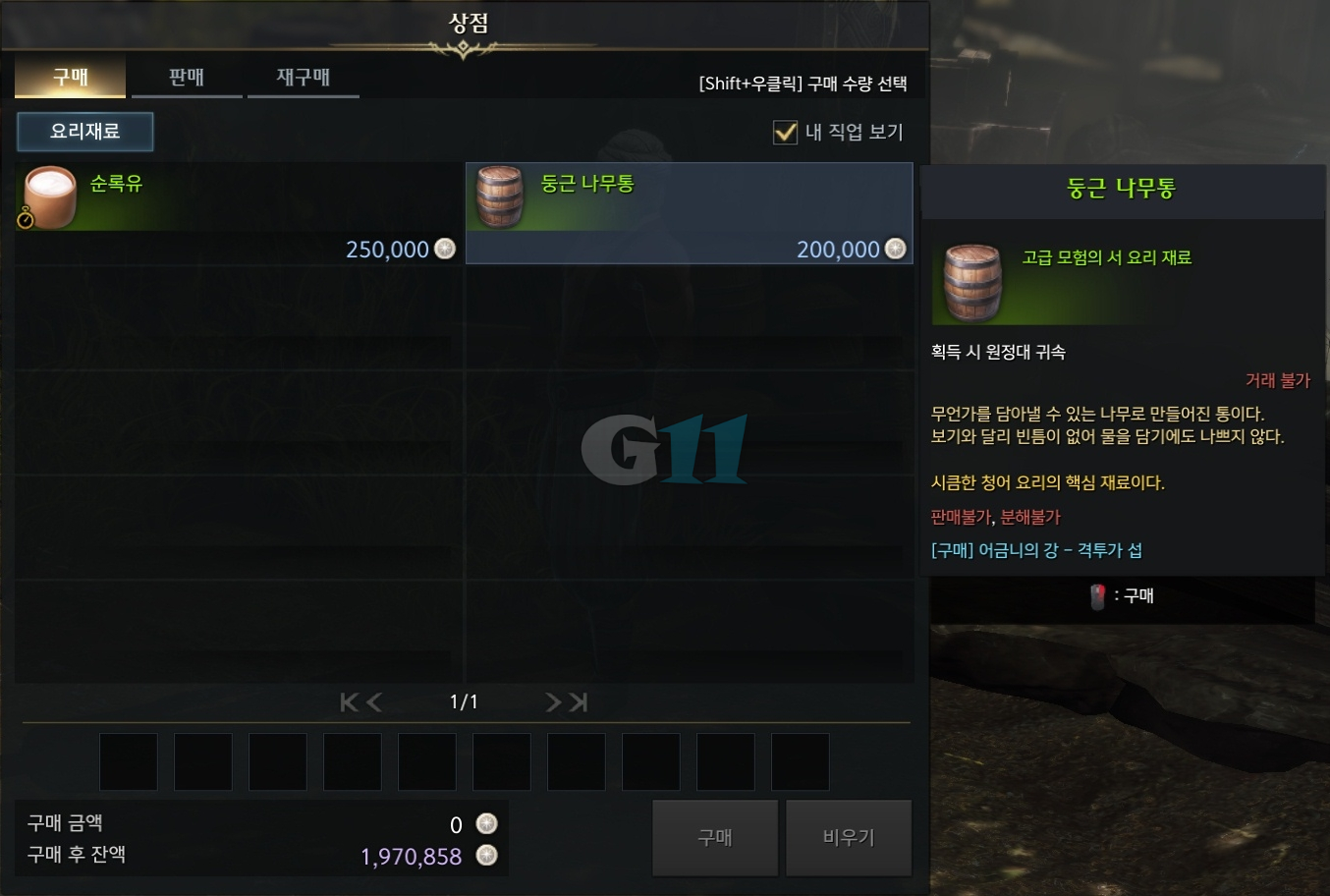 청어를 잡았으면 나무통을 구매해야 합니다.