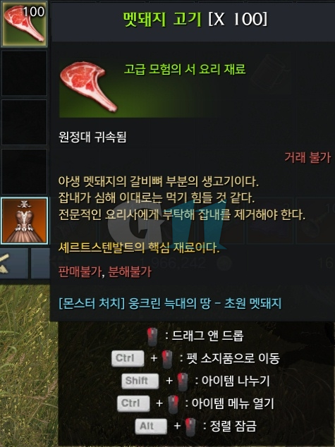 세르트 스텐발트를 제작하기 위해서 멧돼지 고기 100개를 모아야 합니다. 멧돼지의 위치는 웅크린 늑대의 땅에서 위 사진의 위치로 이동해야 하며 진영 간 경쟁이 있을 수 있으니 신비한 돌 기능을 활용하는 것도 좋은 방법입니다.