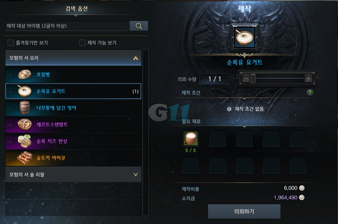 순록유 요거트를 제작하려면 순록유 5개가 필요합니다.