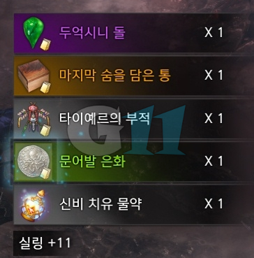레갸르방크 대평원 시노트 광산에서 약 50분 동안 수집품 노가다를 한 성과입니다. 3일 거래소 시세 기준 엘리야베크 문양 29개 약 203골드, 타이예르의 부적 42개 294 골드, 문어발 은화 21개 147 골드, 그믐의 마법서 36개 252 골드, 멜레마르의 어금니 3개 324 골드, 두억시니의 돌 11개 3795 골드, 마지막 숨을 담은 통 2개 620 골드로 총 5,635 골드 수입이 생기므로 골드 벌이가 잘되어 많은 유저가 찾을 것으로 예상됩니다. 수집품 등록 기준 넉넉하게 약 1시간 30분에서 2시간 정도 걸릴 것으로 예상됩니다.