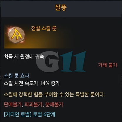 | 전설 질풍 룬 | 스킬 시전 속도 14% 증가 |