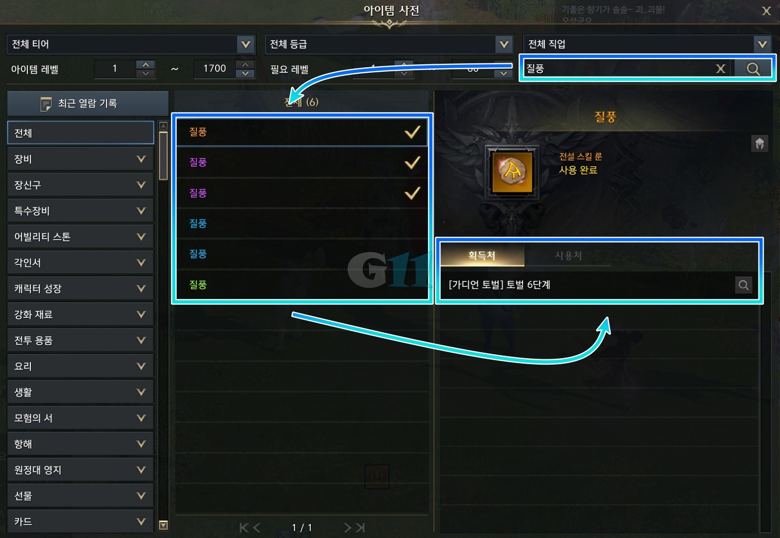 | 고급 질풍 룬 | [가디언 토벌] 토벌 2단계 이상 |