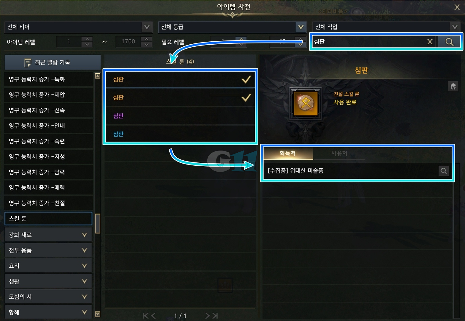 심판 룬은 단죄 룬과 다르게 호감도를 통해 수급할 수 있지만 이 역시 효율이 좋지 못하며 미술품 44개 수집 보상 또한 초보자가 하기에는 너무 어려운 방법입니다. 단죄 룬 수급 방법과 같이 원정대 영지 무역 상인을 통해 얻는 것이 가장 효율적인 방법으로 자세한 수급 방법은 아래에 소개합니다.