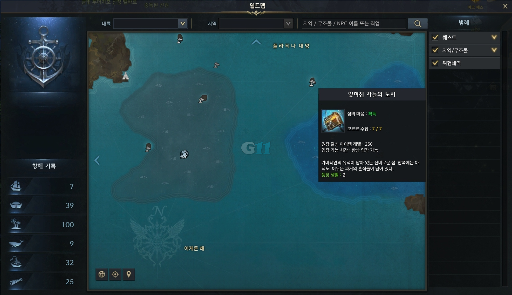 잊혀진 자들의 도시 섬은 루테란 대륙에서 출항하여 출발하면 빠르게 도착 가능합니다.