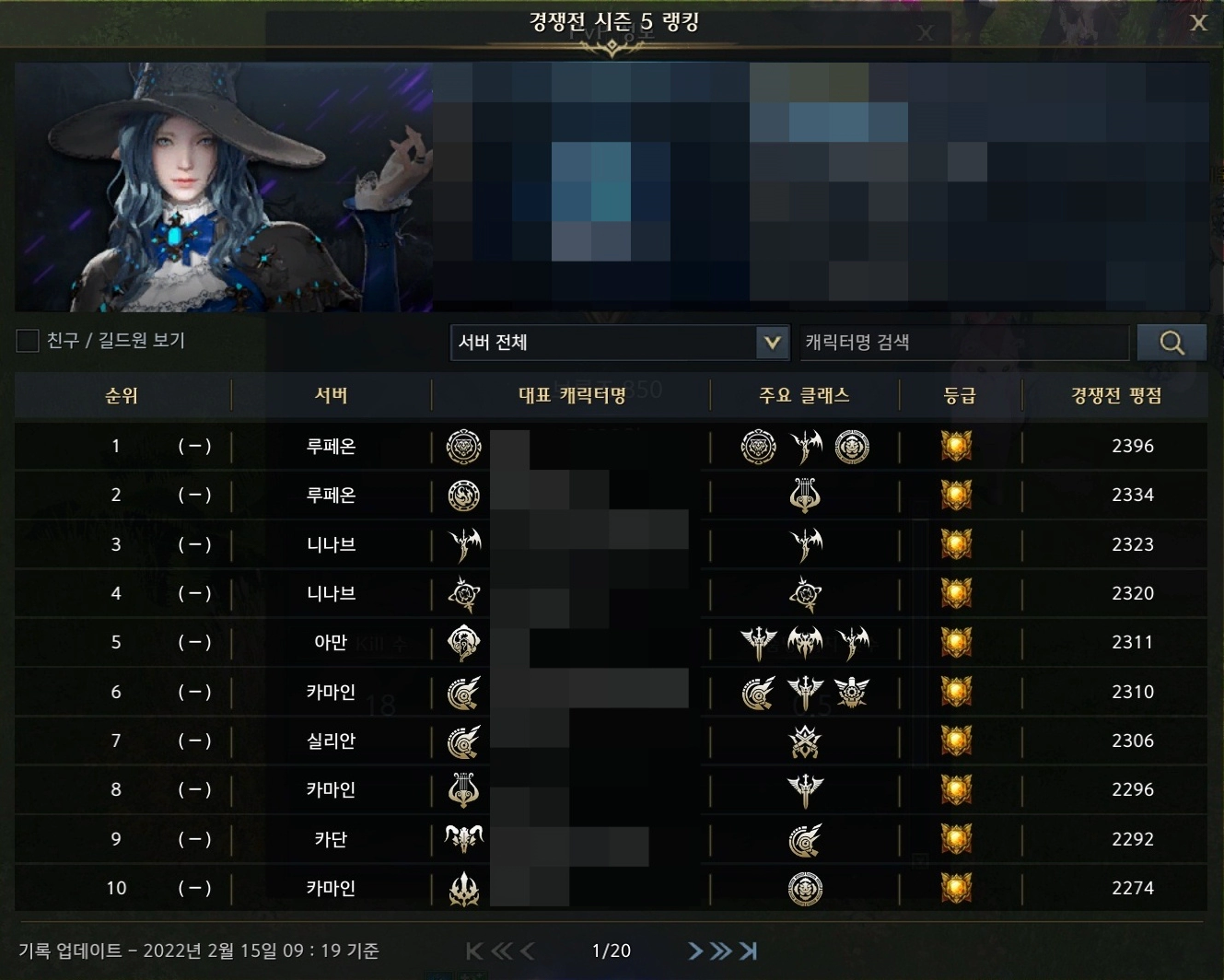 경쟁전 시즌5 랭킹 기준 상위권에는 리퍼, 스트라이커, 스카우터, 배틀마스터가 가장 많은 비율을 차지하고 있으며 다음으로 워로드, 서머너, 바드, 기공사가 가장 많이 보였습니다. 상위권으로 갈수록 직업 티어도 중요하지만 낮은 티어에 배치된 직업도 종종 있는 것을 보아 개인 피지컬도 상당히 중요한 것으로 보입니다. 해당 PVP 순위표는 Alt+K를 누르고 확인할 수 있습니다.