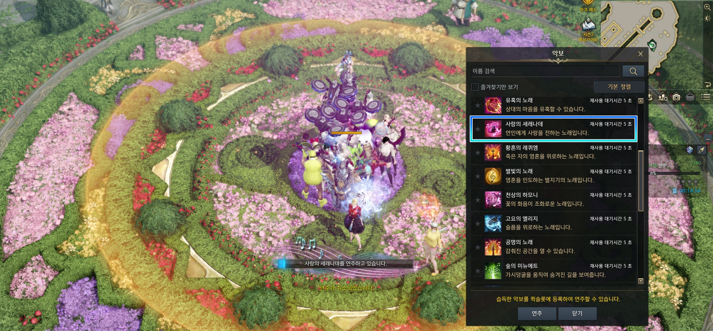마지막 협동 퀘스트는 5시 방향에서 진행하는 노래 사랑의 세레나데 연주입니다. 중앙에서 사랑의 세레나데를 연주하면 기여도가 올라가며 하모니 섬 섬마와 천상의 하모니 악보가 드롭되는 조화로운 소리의 상자를 획득할 수 있습니다. 사랑의 세레나데 없으면 기여도가 없어 보상을 획득할 수 없으니 리베하임 섬을 먼저 들러 악보를 얻고 진행하세요.