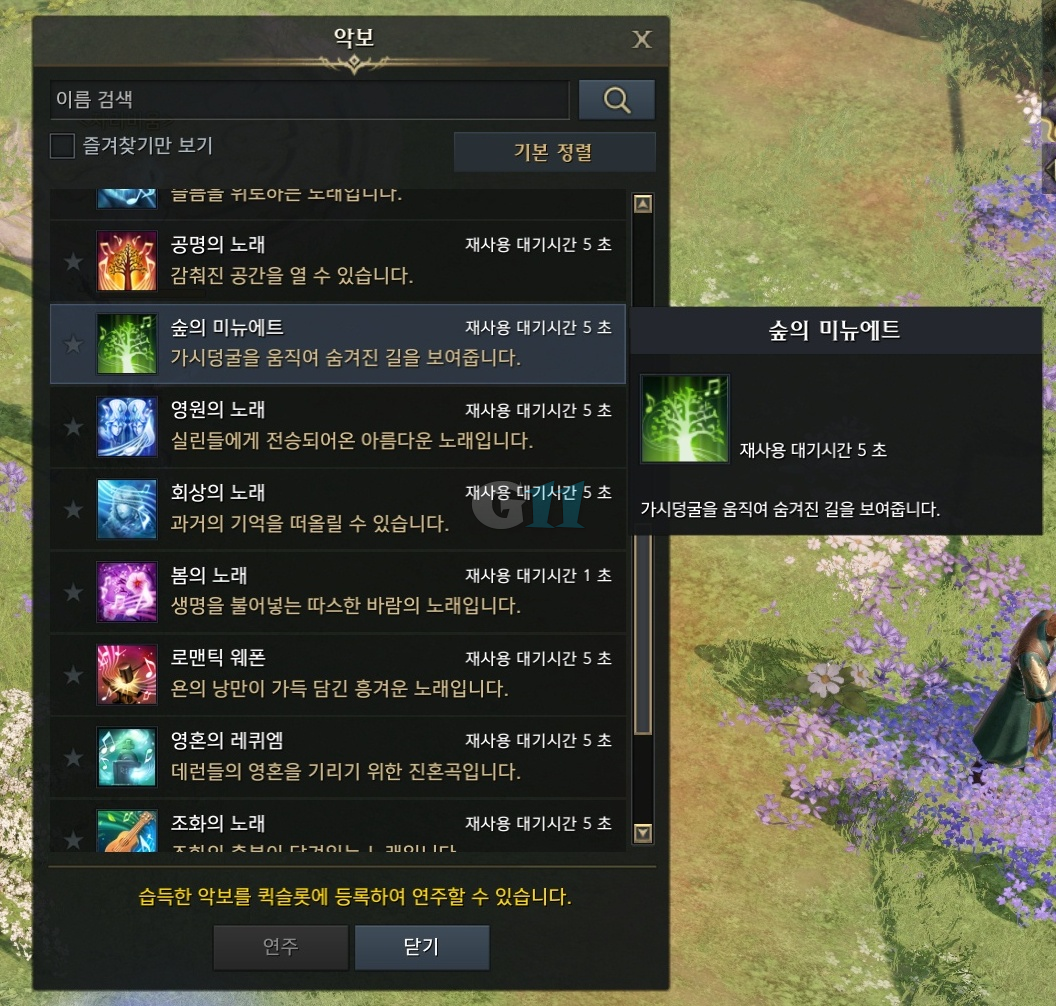 숲의 미뉴에트 얻는법