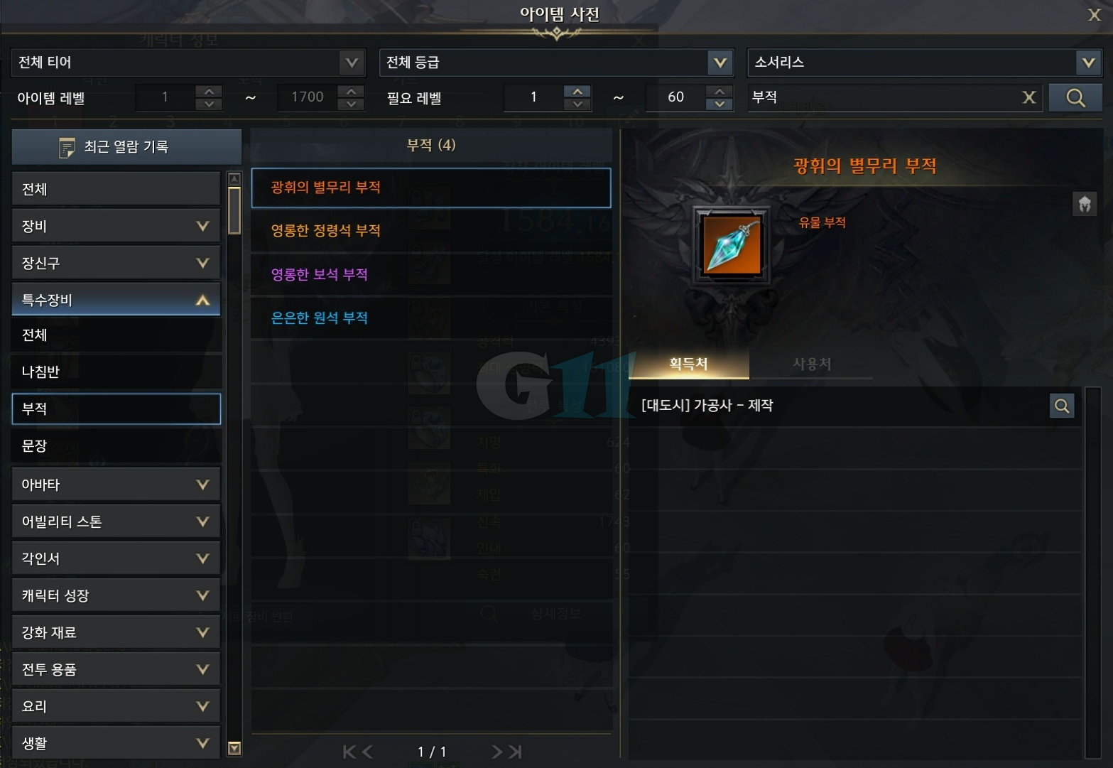| 영롱한 정령석 부적 | 영롱한 보석 부적 + 침묵의 시트린 |