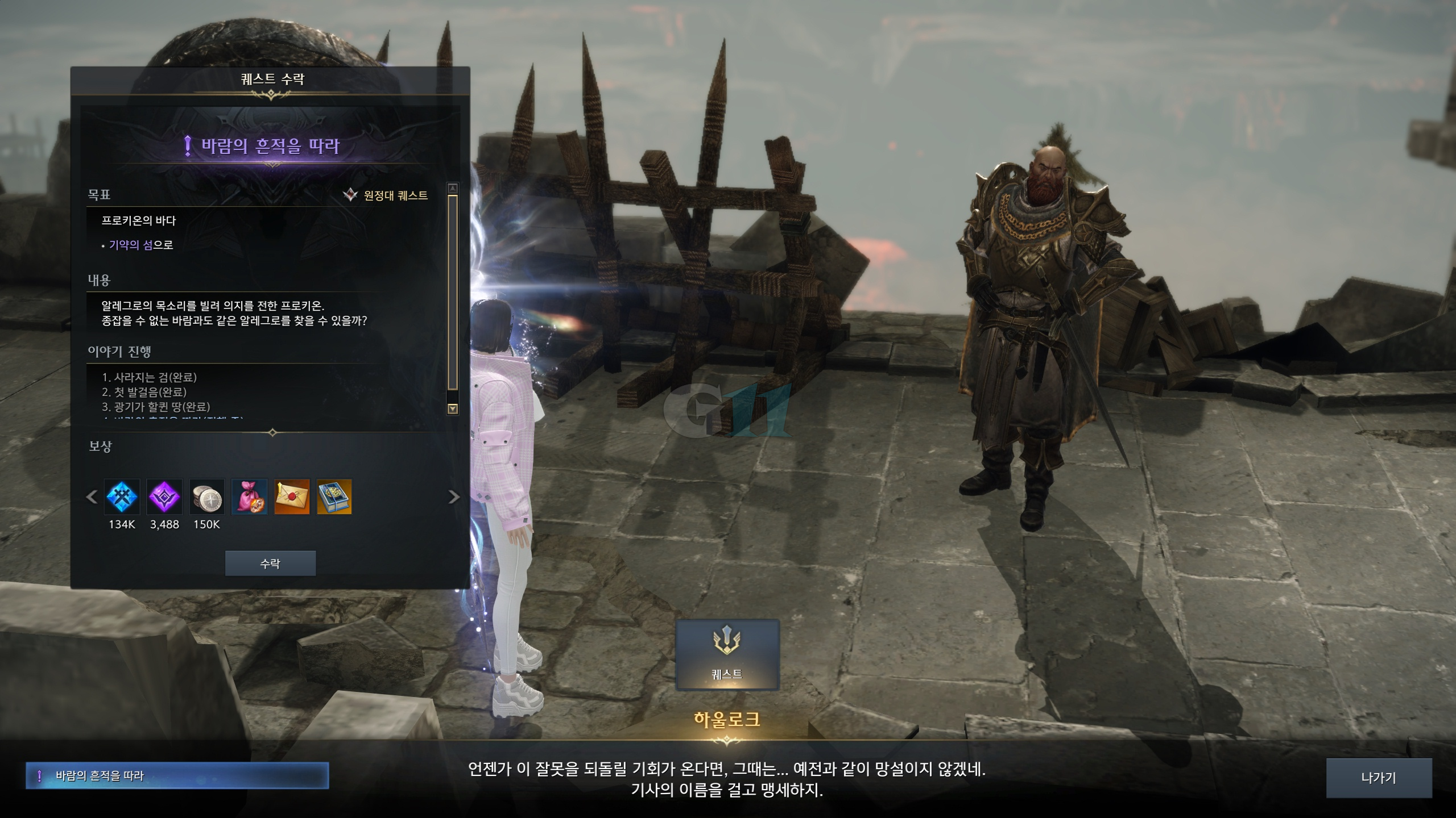 퀘스트 진행을 위해 기약의 섬으로 이동해야 하며 기약의 섬은 베른 남부 앞 망자 해역에 위치해 있으니 베른 남부 비프로스트 또는 베른 성 귀환의 노래, 정기선 등을 이용해 이동하면 됩니다.