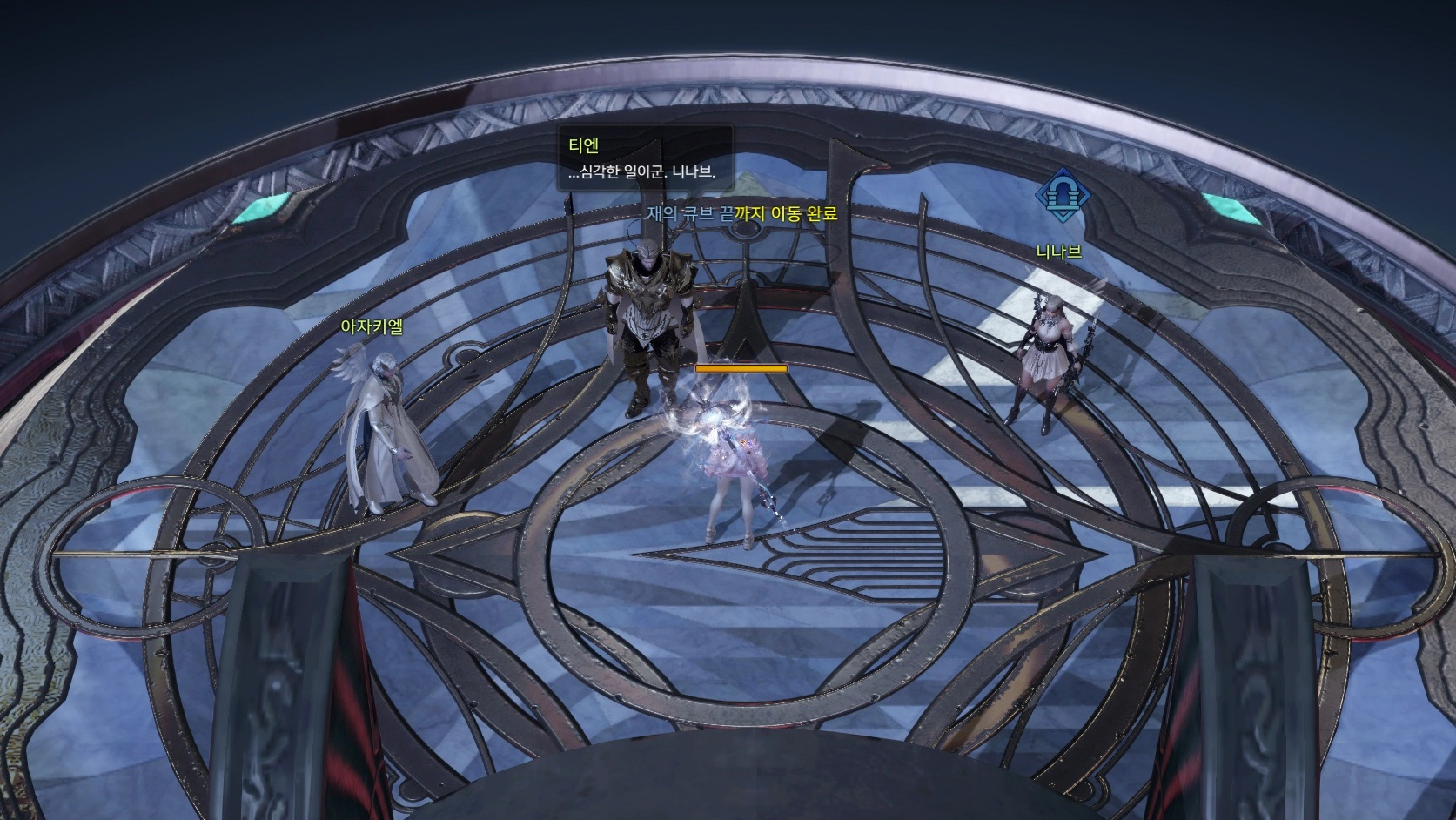 아자키엘, 니나브와 대화를 완료하면 아리안 오브의 대신전으로 이동됩니다. 이후 바로 위 니나브와 대화를 하고 감정표현 [/의문]을 한 뒤 아자키엘, 티엔과 대화를 진행하면 대신전 밖으로 나가라고 합니다. 걸어 나가지마시고 대신전 스퀘어 홀을 타고 나가면 빠르게 진행 가능합니다.