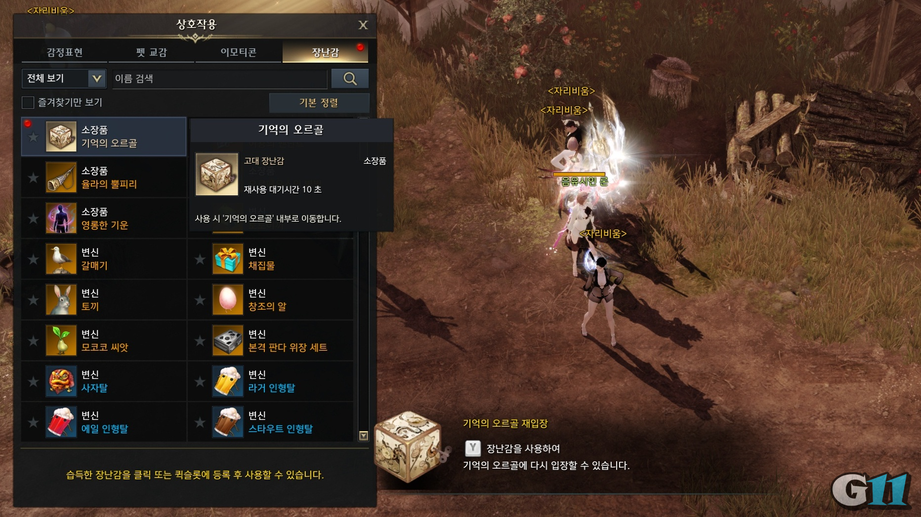 검은 들녁 바깥의 삶 퀘스트를 완료하면 기억의 선율과 기억의 구슬#1을 보상으로 얻을 수 있습니다. 기억의 구슬을 보상으로 얻고 시엔 여관 앞에서 기억의 오르골을 얻고 장난감으로 등록할 수 있습니다.