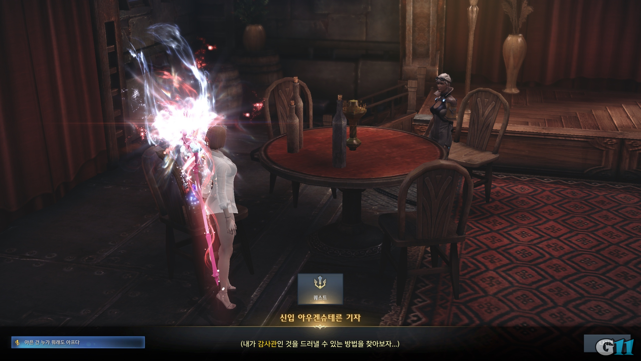 '아픈건 누가 뭐래도 아프다' 퀘스트는 아르데타인 슈테른 시장 지구 스퀘어 홀로 이동하여 네리아 주점 안에 있는 신입 아우겐슈테른 기자에게서 시작할 수 있습니다.